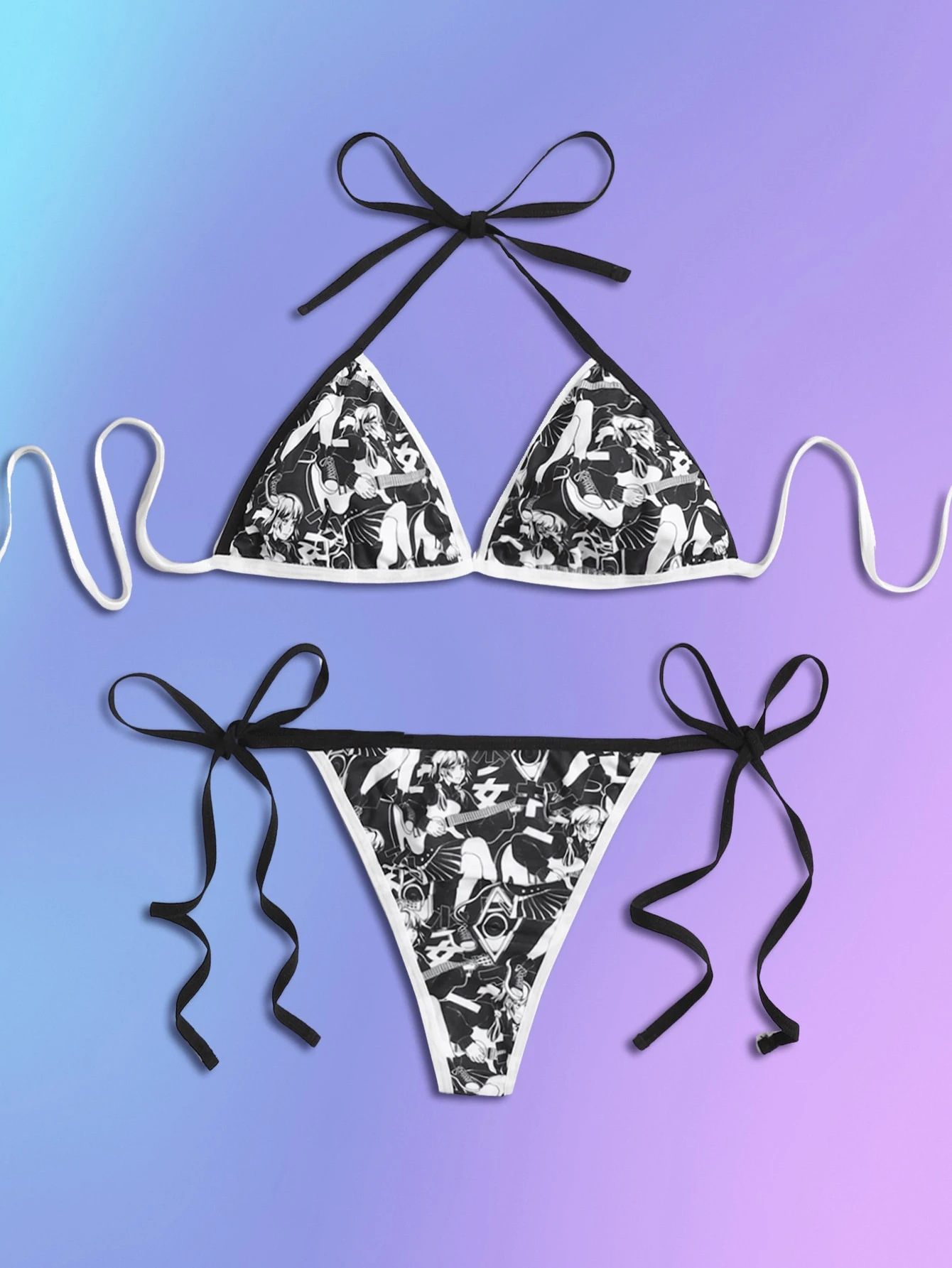 Anime Dessous Set mit Cartoon Figur Muster, Neckholder, seitlichem Band