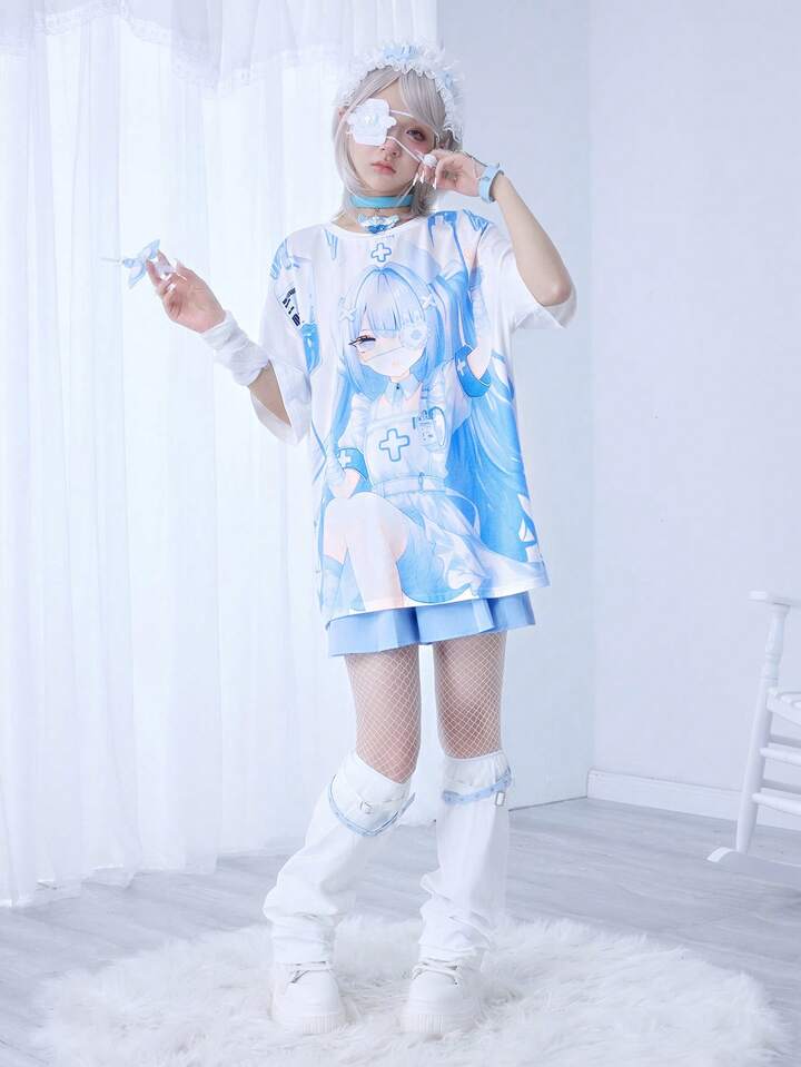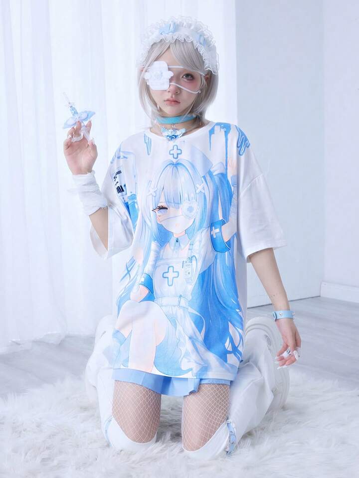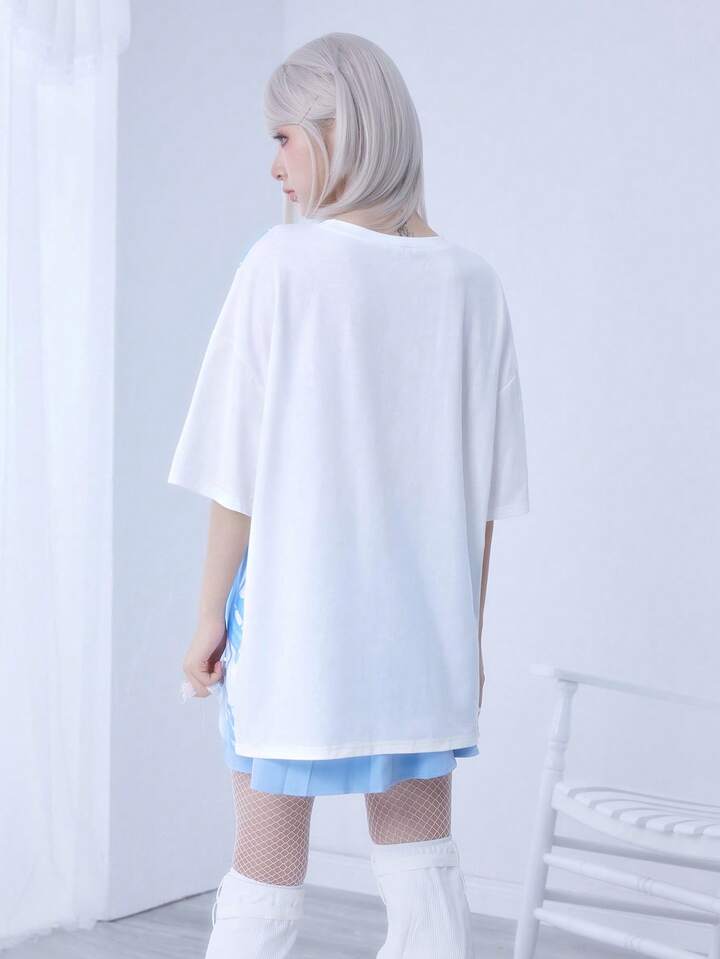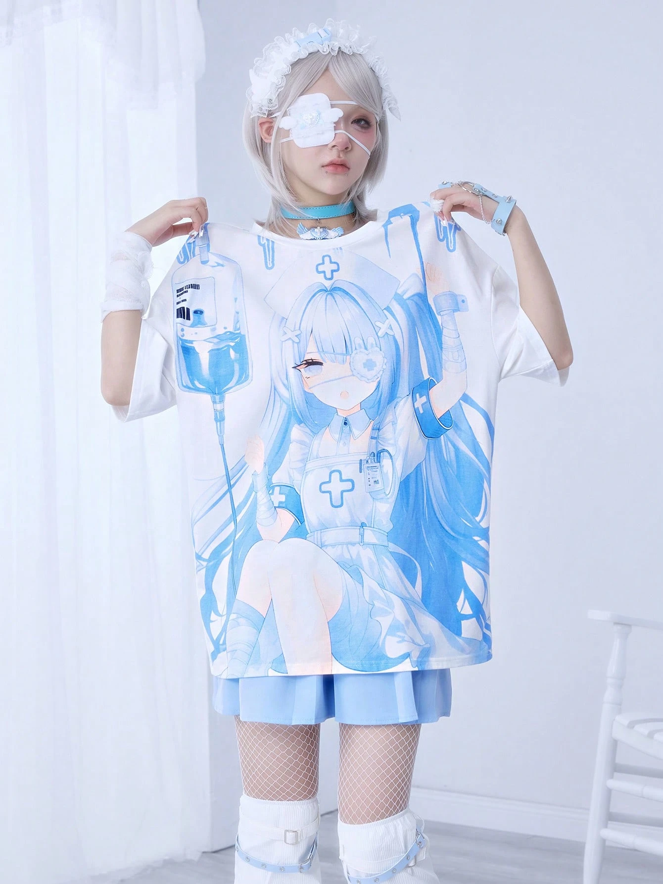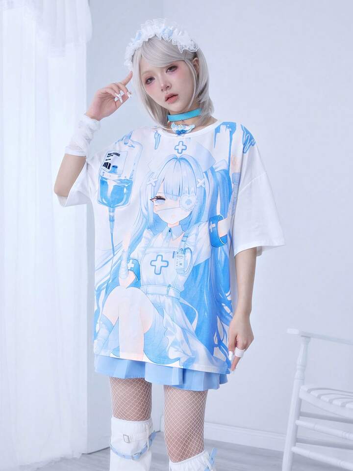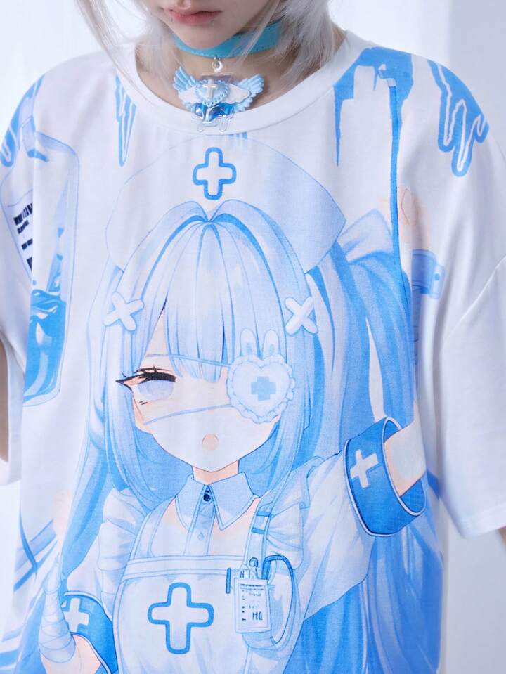 Anime Cartoon Yandere Mädchen rosa locker geschnittenes Rundhals Kurzarm T-Shirt