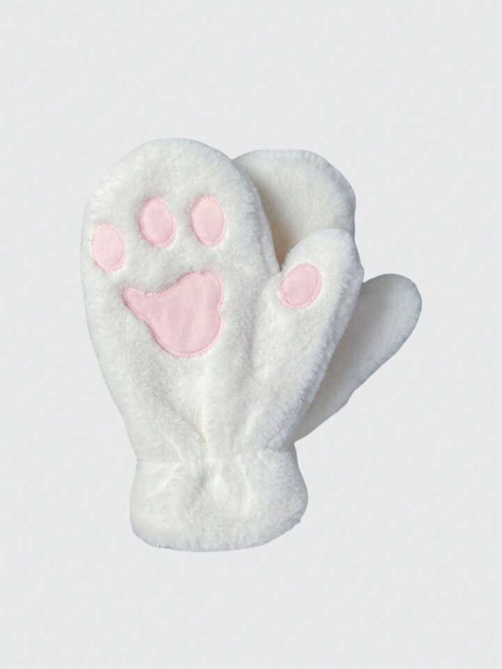 Anime Süße Cartoon Katzen Krallen Stickerei Fäustlinge, lässige warme Plüsch Vollfinger Handschuhe für Herbst & Winter zum Outdoor tragen