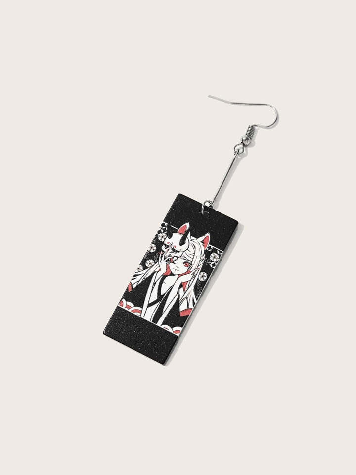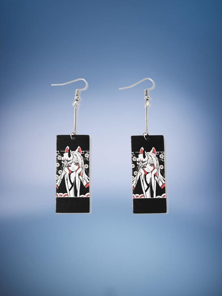 Anime Ohrringe mit Figur Grafik, quadratischem Dekor