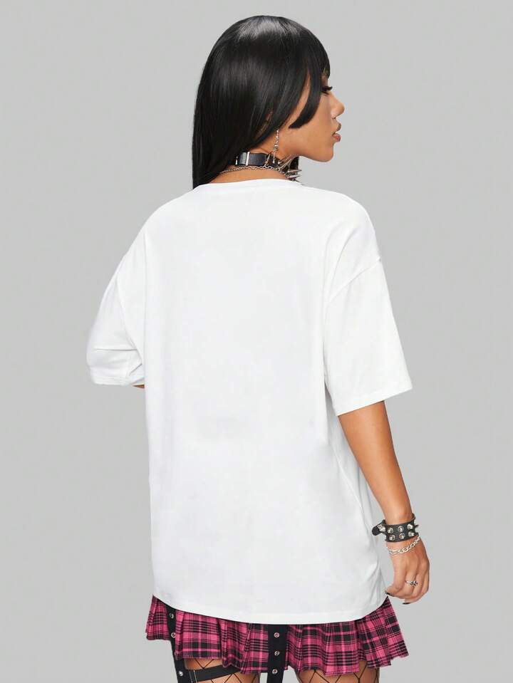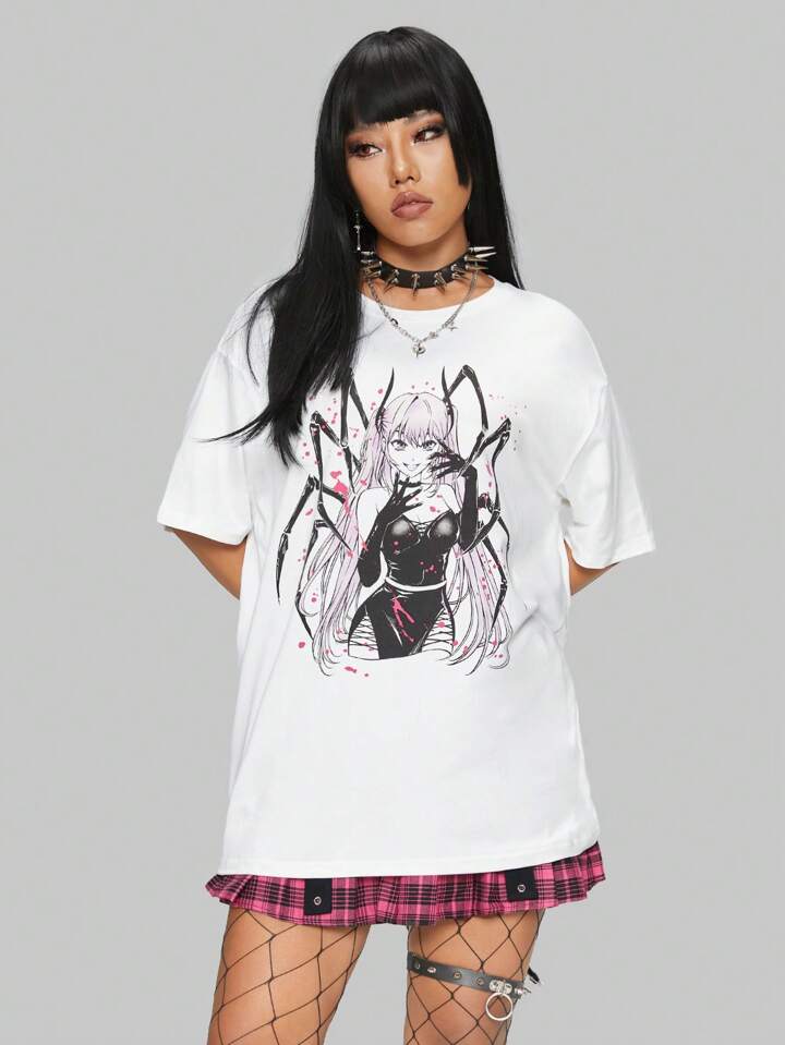Anime Drop Shoulder T-Shirt mit Figur Muster,