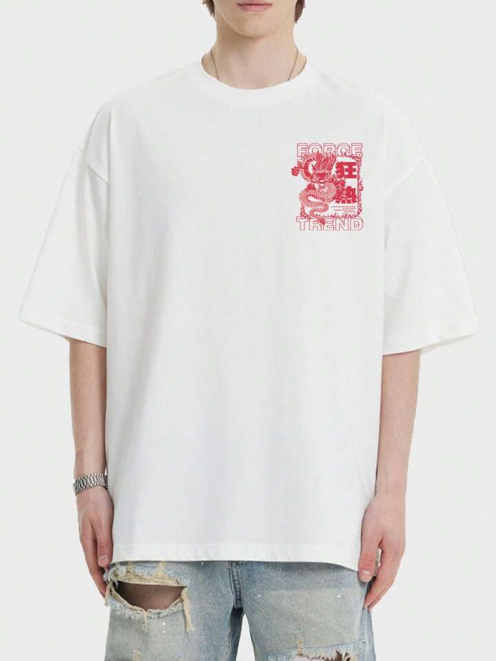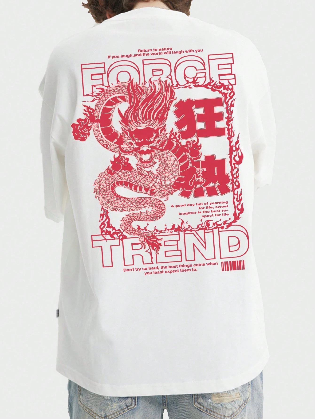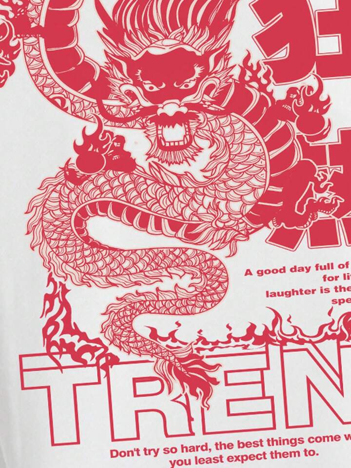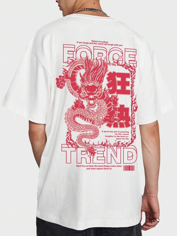 Anime Jungen Baumwolle T-Shirt mit Drachen und Buchstabengrafik