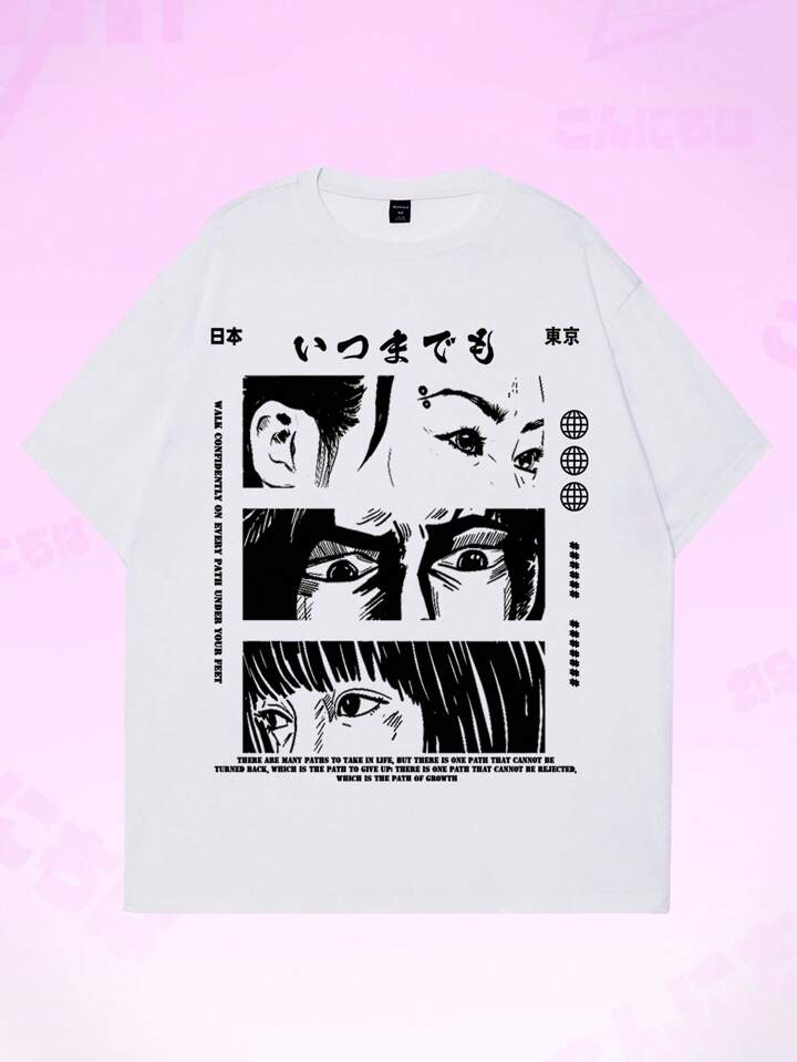 Anime Männer Drop Shoulder T-Shirt mit Figur & Buchstabe Grafik,