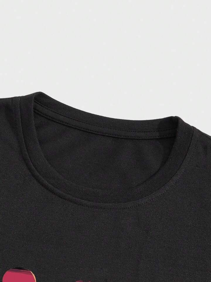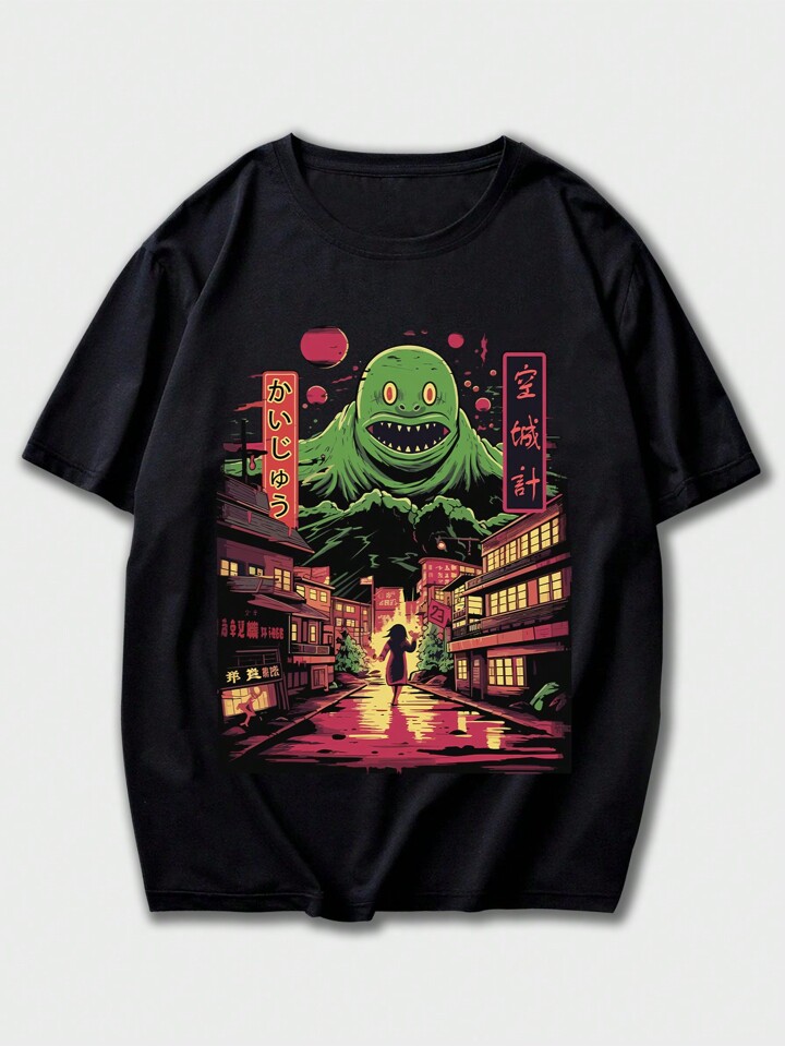 Anime T-Shirt mit japanischen Buchstaben, Cartoons und Figuren für Jungs