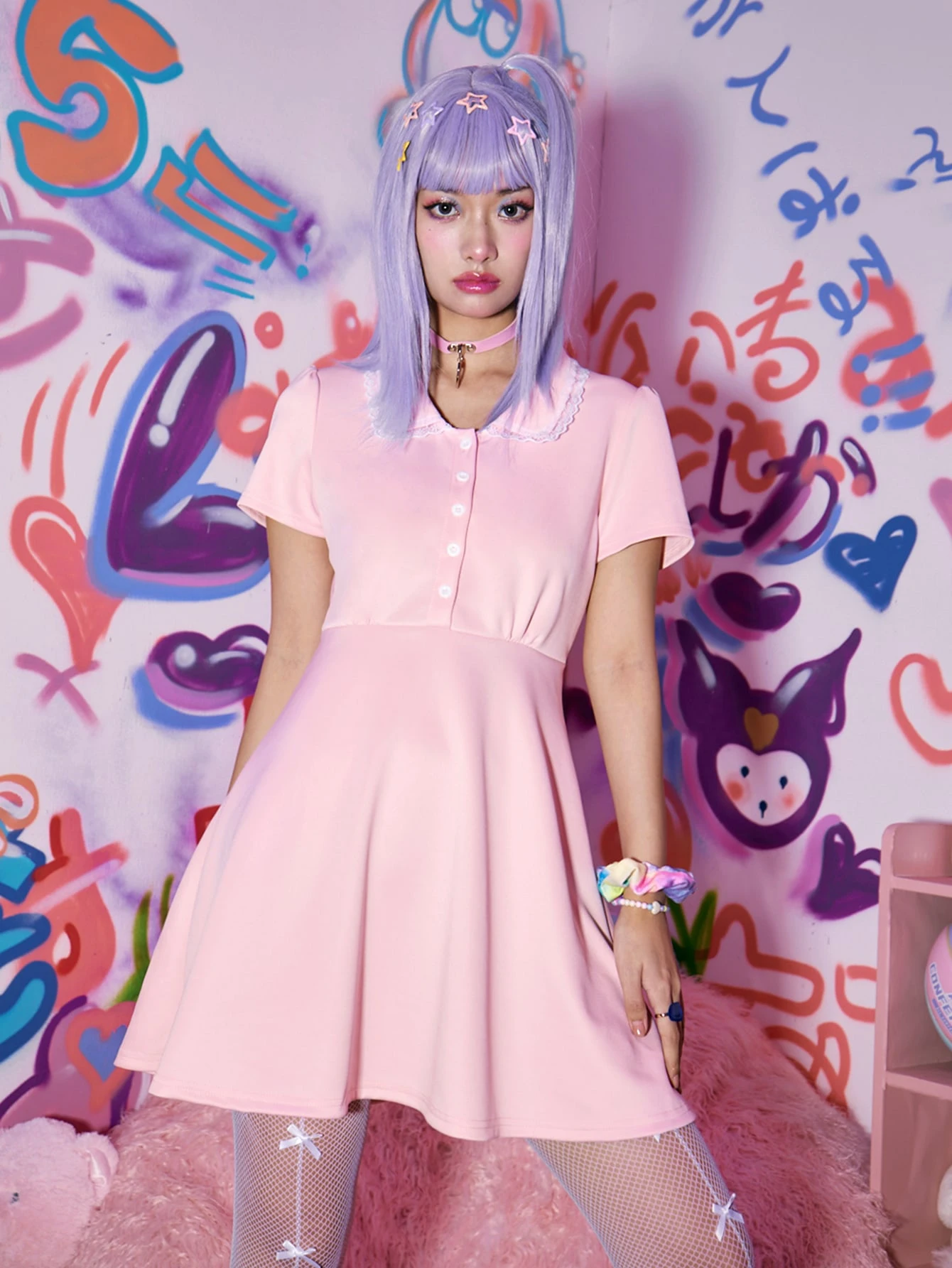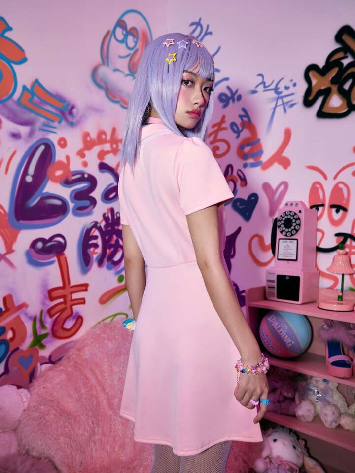 Anime Kleid mit halber Knopfleiste, ohne Gürtel