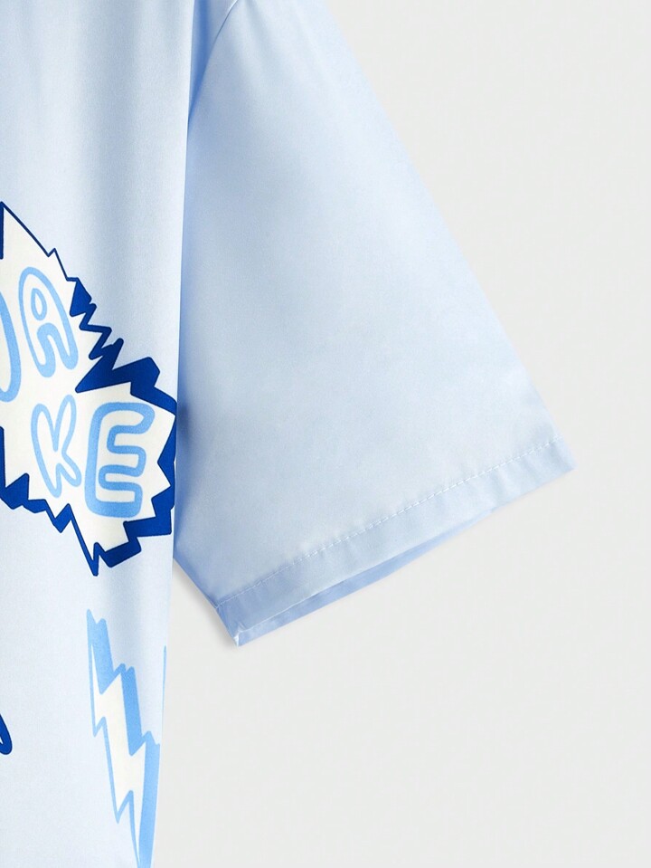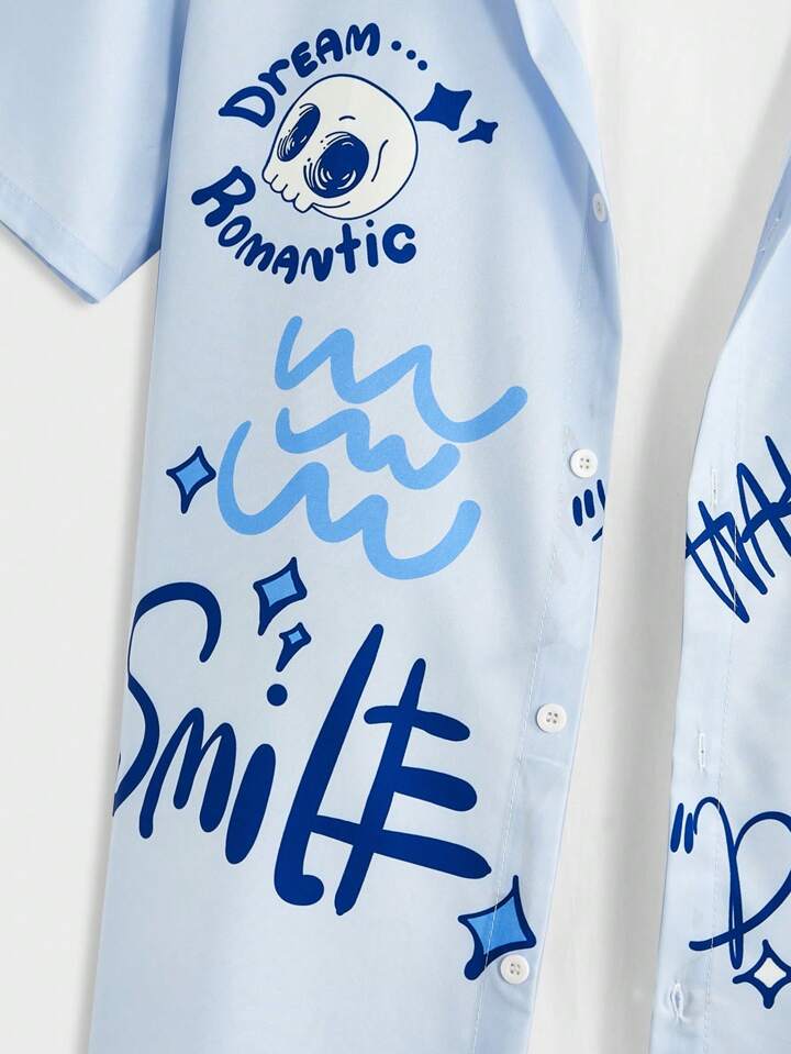 Anime Herrenhemd Mit Buchstaben & Totenkopf Kurzarm-druck