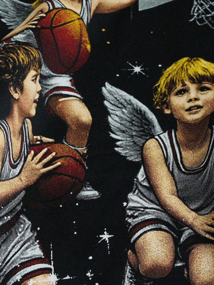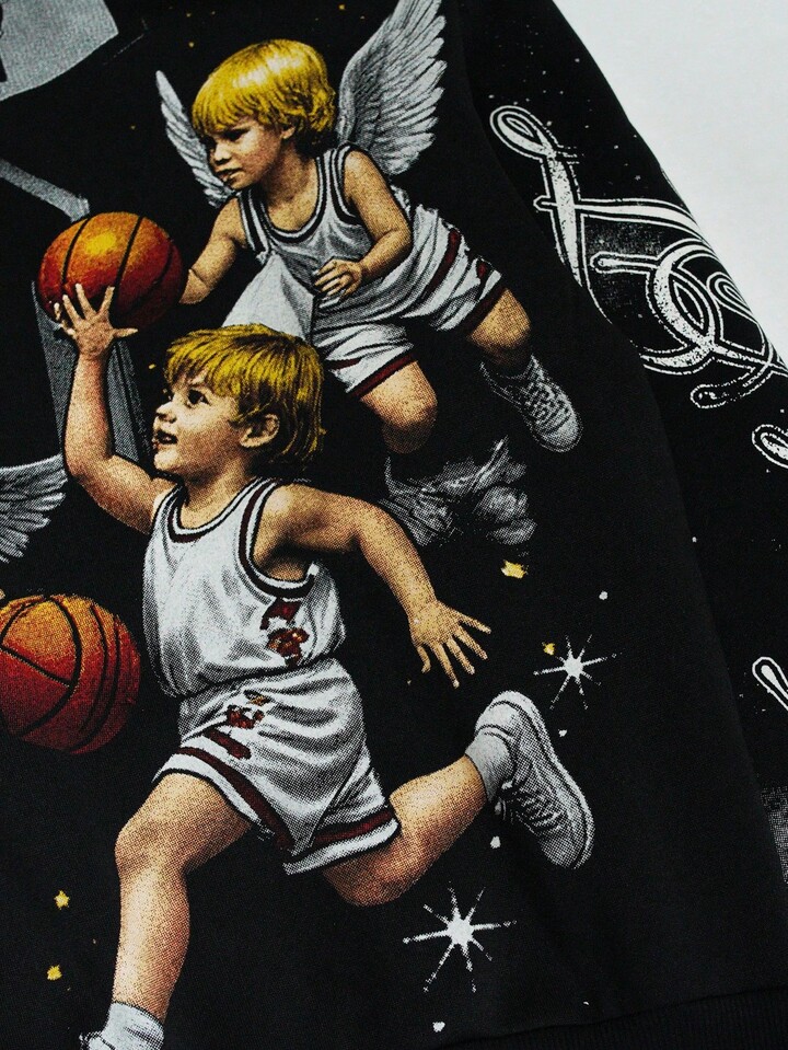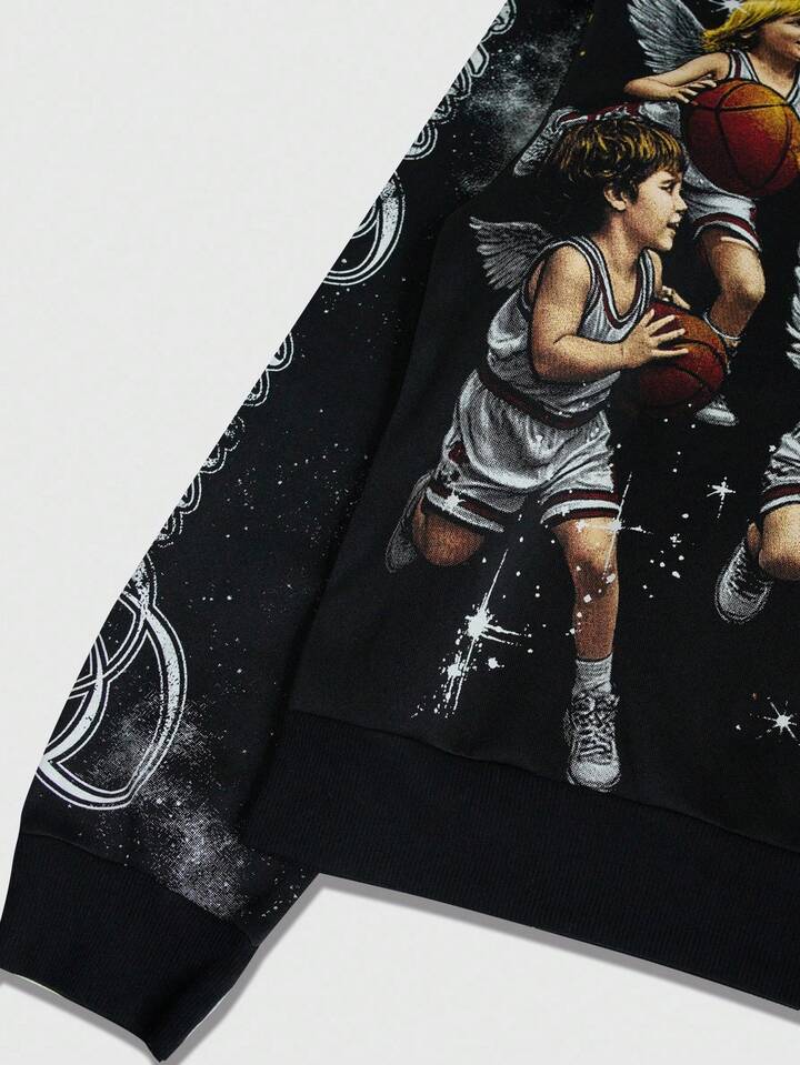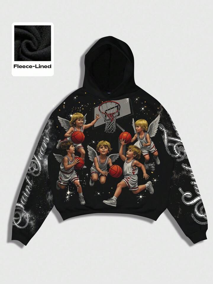 Anime Herren Engel Muster Thermofutter Lässig Loose Fit Kapuzenpullover, Herbst/Winter, Grafik Hoodie