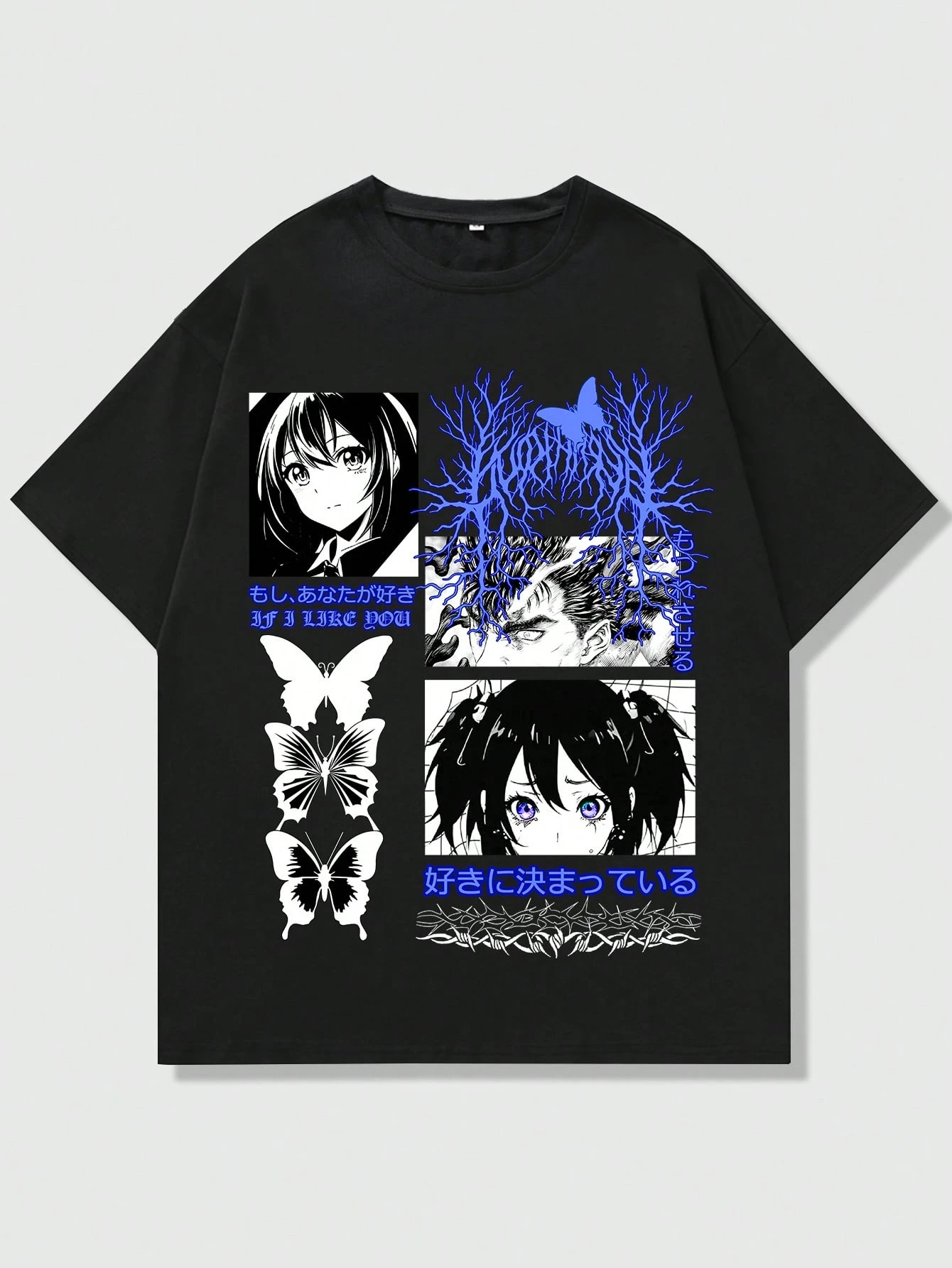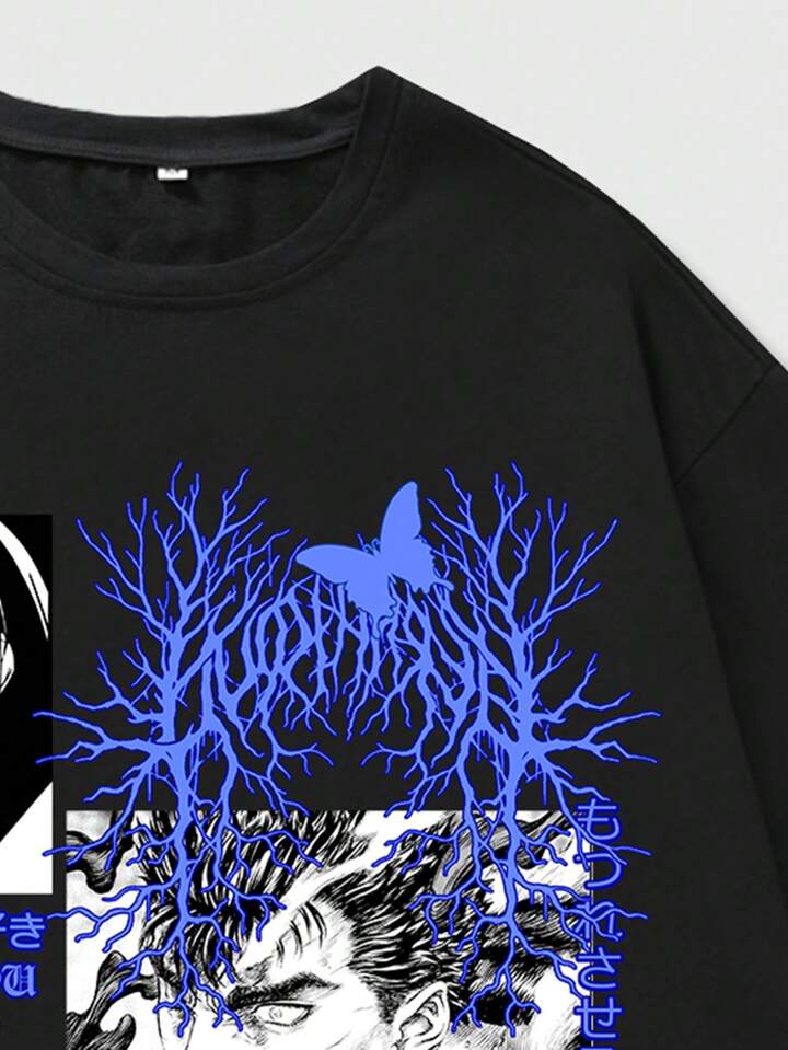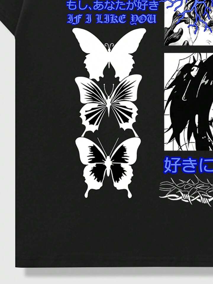Anime Kurzarm-t-shirt Mit Schmetterlings- Und Buchstaben-print Für Herren