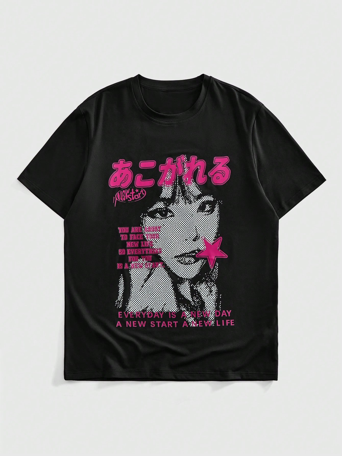 Anime Herren Casual Grafik Slogan Muster T-Shirt, Sommer