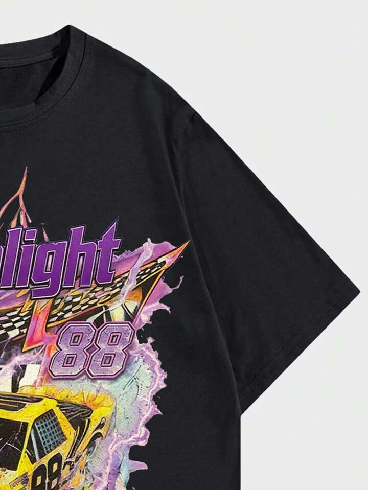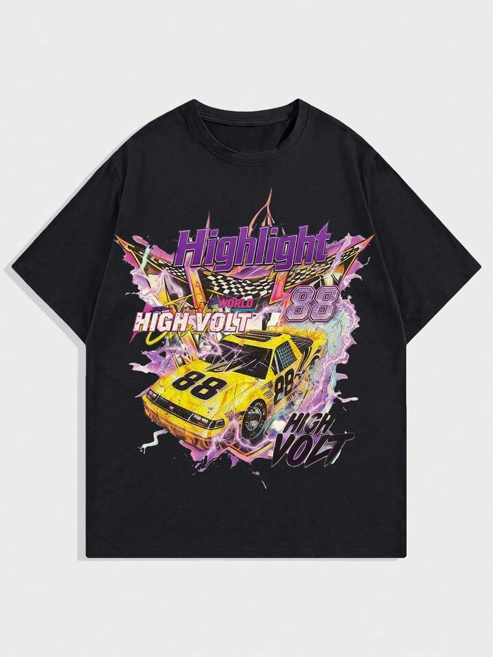 Anime Herren Mode Street Buchstaben & Auto Grafik Rundhals Kurzarm T-Shirt, Sommer
