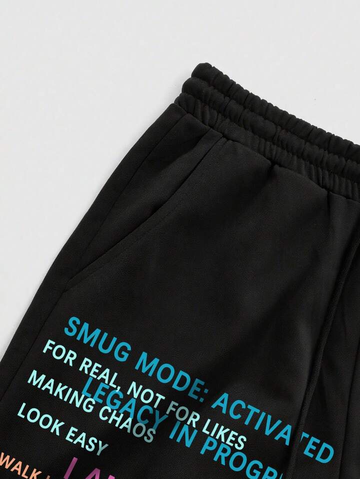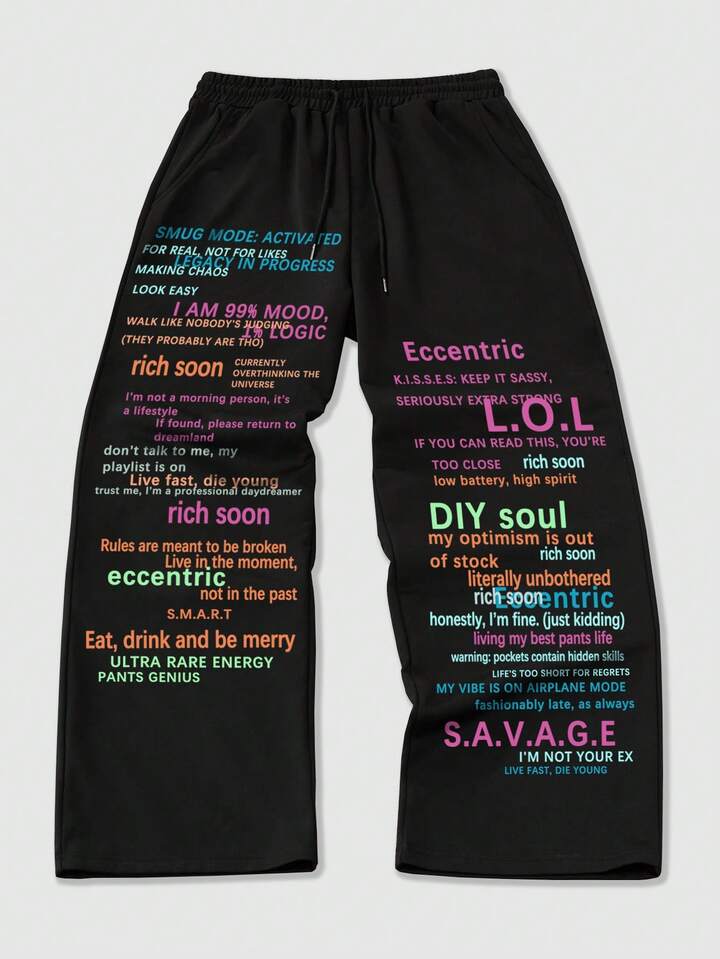 Anime Herren Lose Bequeme Casual Sports Gerade Bein Jogginghose Mit Buntem Englischem Druck, Herbst/Winter