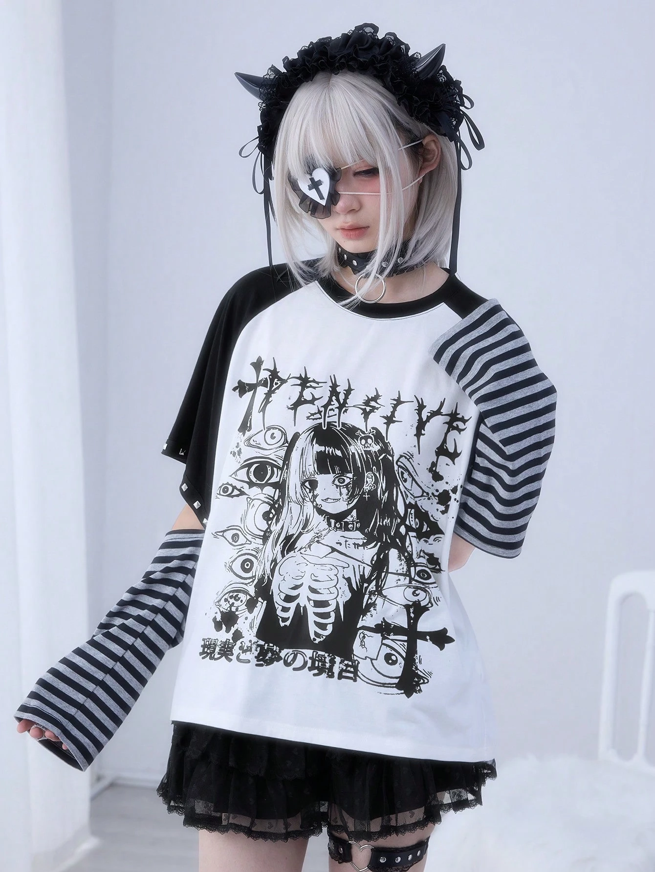 Anime Punk 2 in 1 Rundhals Lässig T-Shirt für Damen
