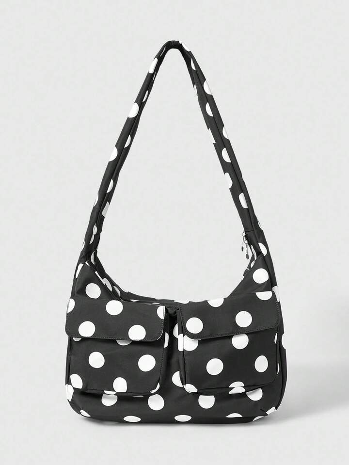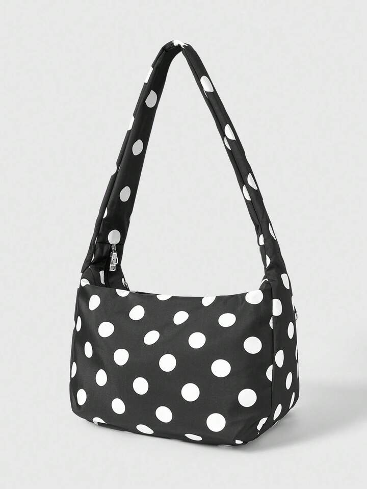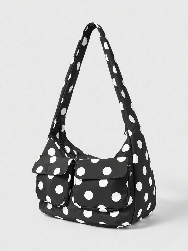 Anime Retro minimalistischer schwarz-weißer Polka-Punkt Damen Schultertasche mit großer Kapazität, lässige Shopper Tasche, geeignet für täglichen Pendlerverkehr, Reisen usw.