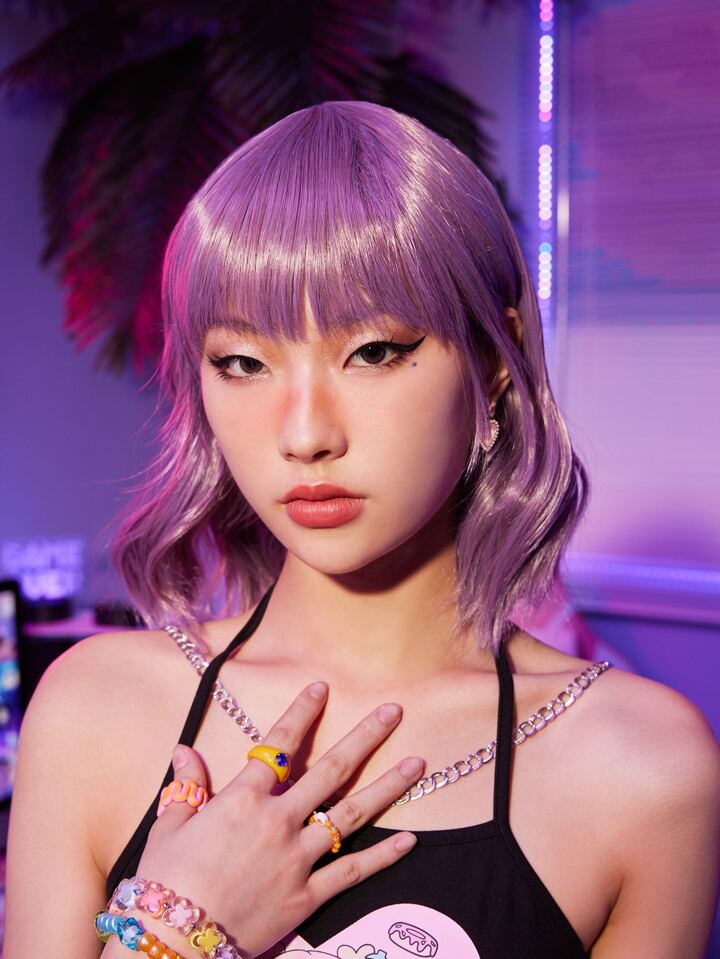 Anime Künstliche Perücke kurz Lockig, mit Pony