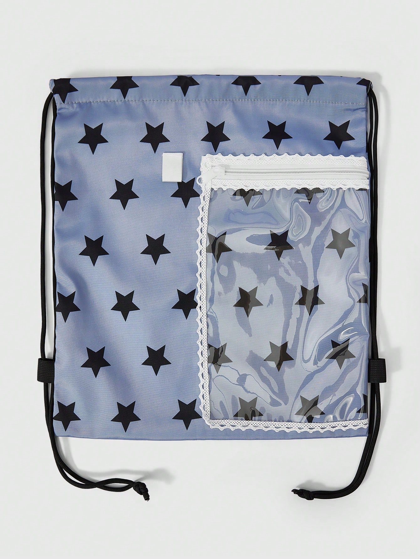 Anime Einfacher Stern-Druck Spitze-besetzter transparenter Reißverschluss-Tasche Großer Kapazität Multifunktions Dunkelgrauer Kordelzug Rucksack, süßer Animationsstil, geeignet für Schule, Pendeln, tägliche Lässig, sehr niedlich