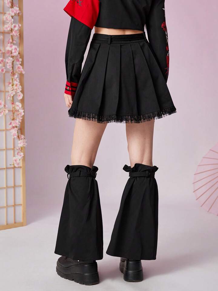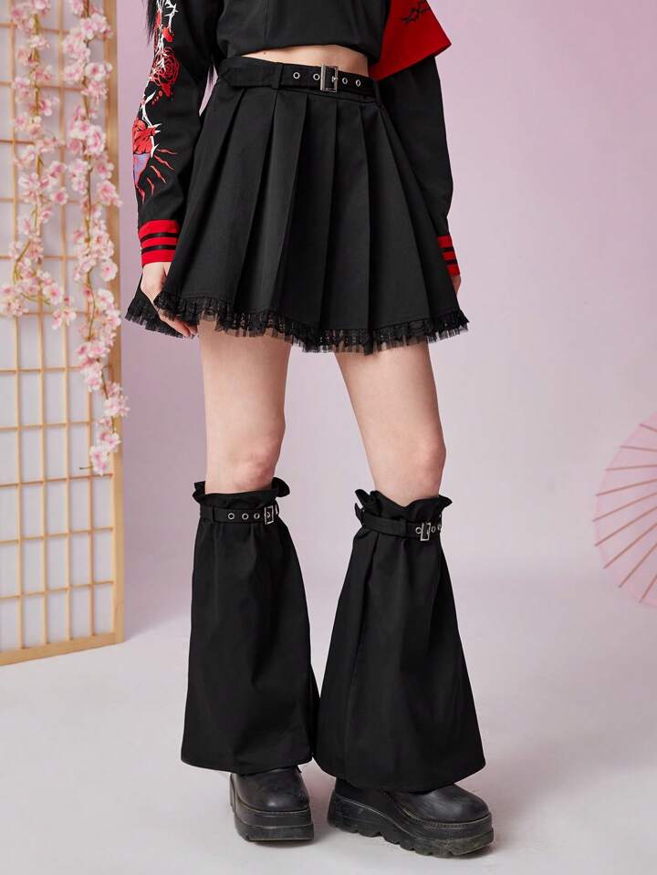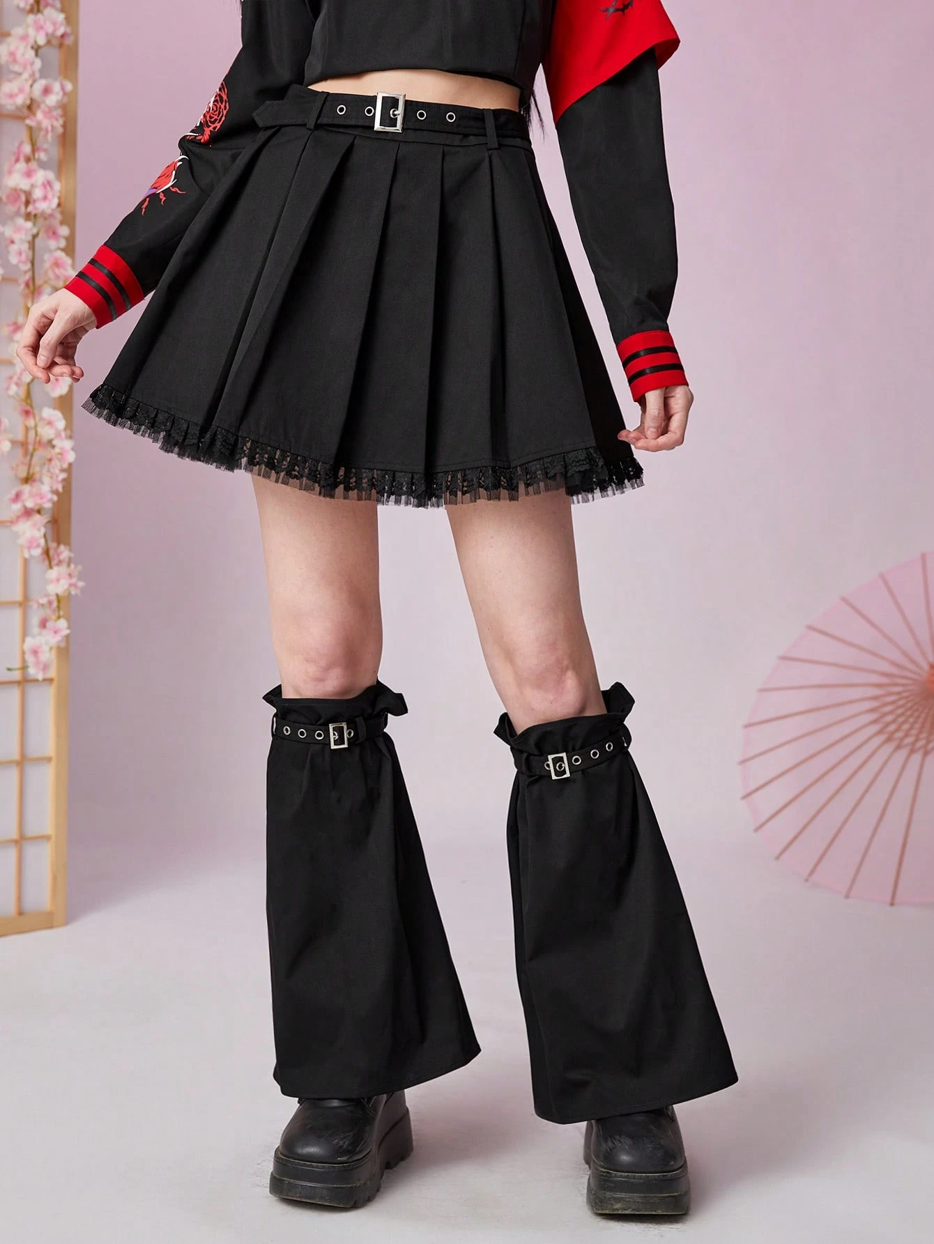 Anime Rock mit Falten, Gürtel, Kontrast Spitzen, & abnehmbar Bein