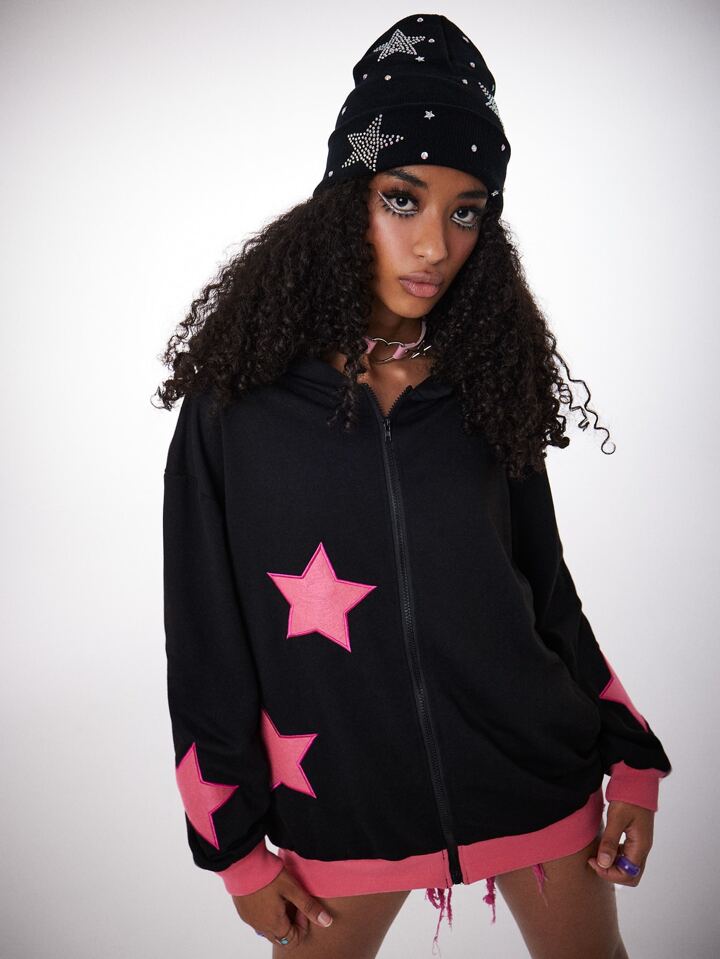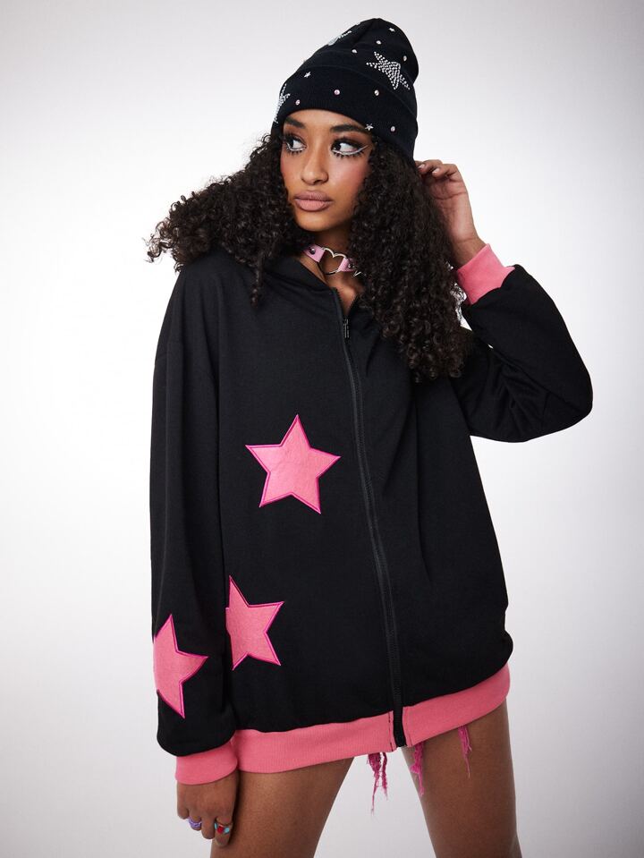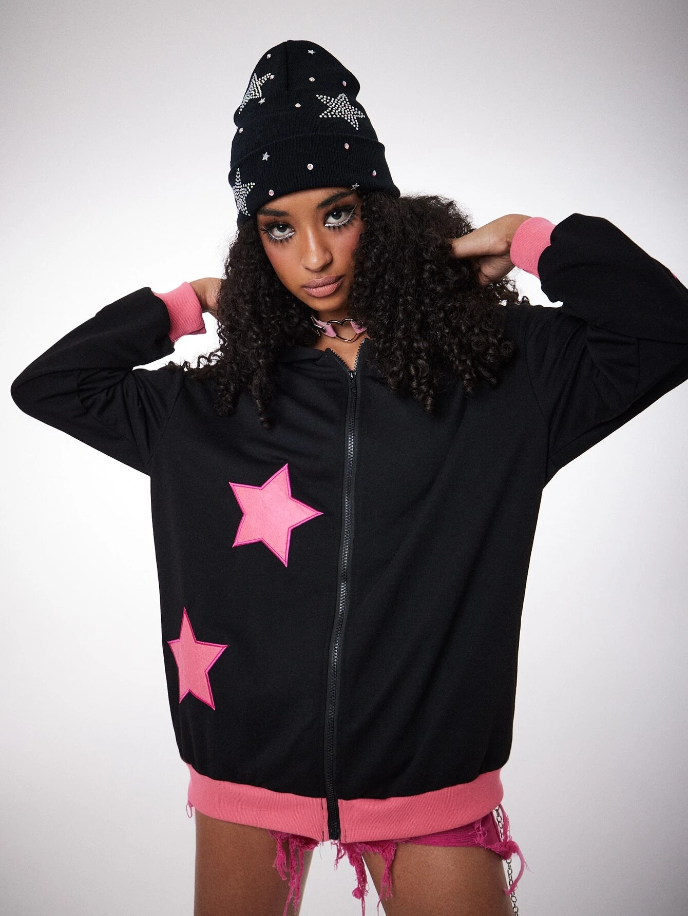 Anime Kapuzenpullover mit Reißverschluss Stern Muster