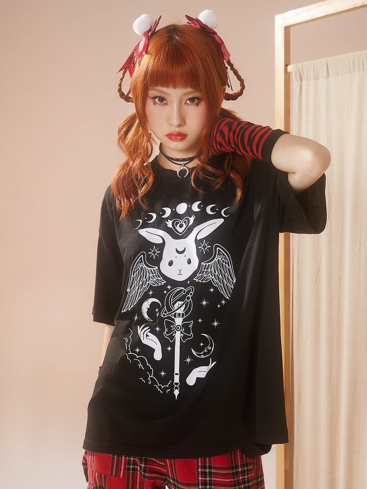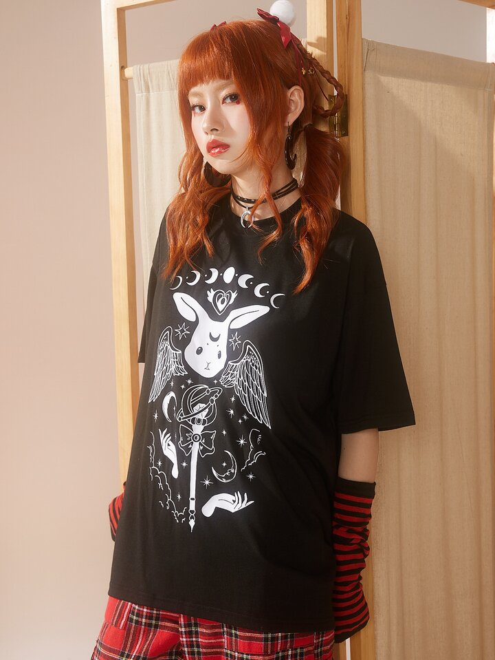 Anime T-Shirt mit Flügeln & Cartoon Grafik
