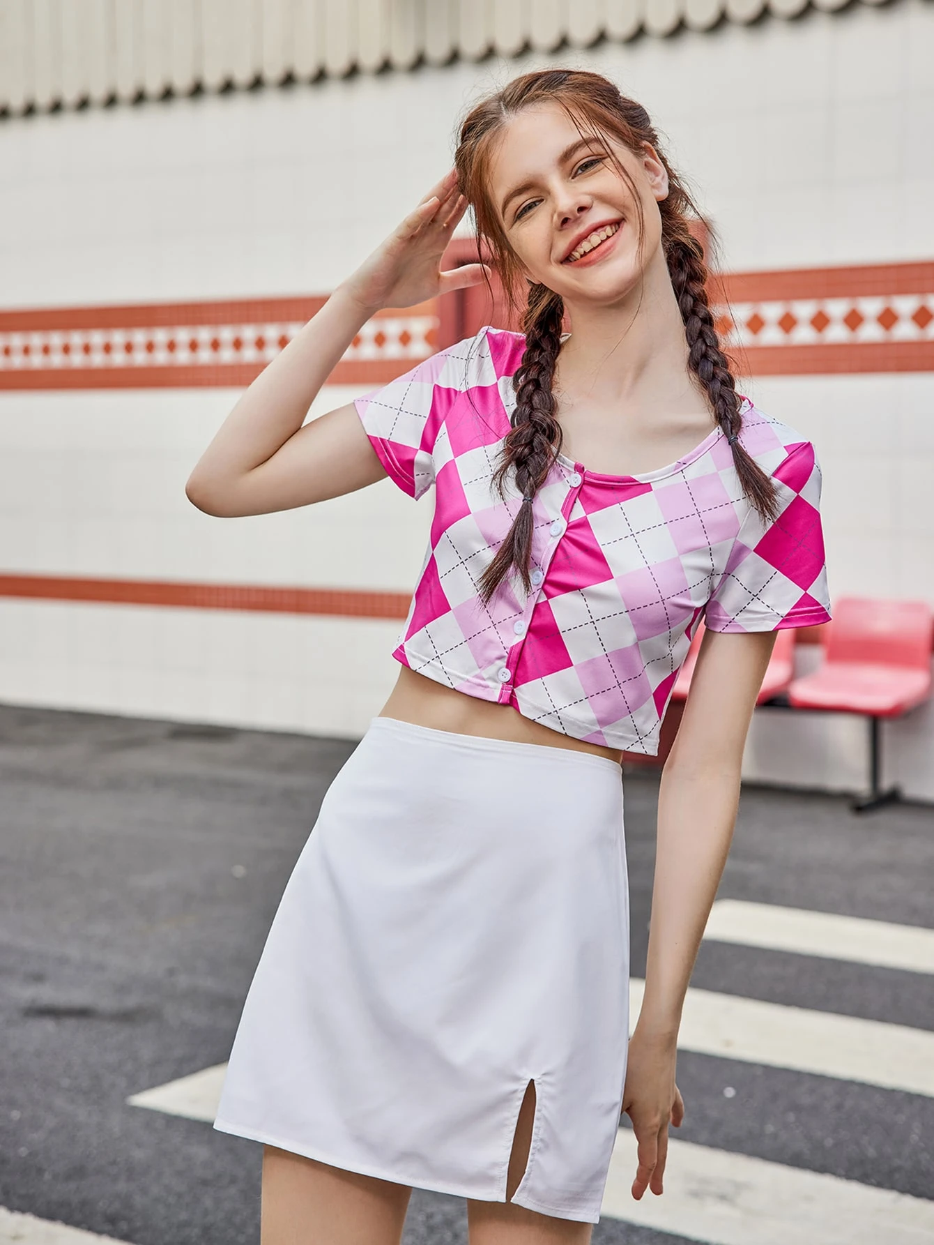 T-Shirt mit Argyle Muster und Knöpfen vorn