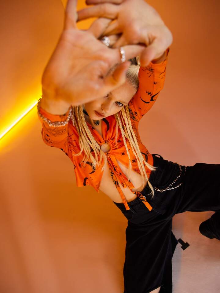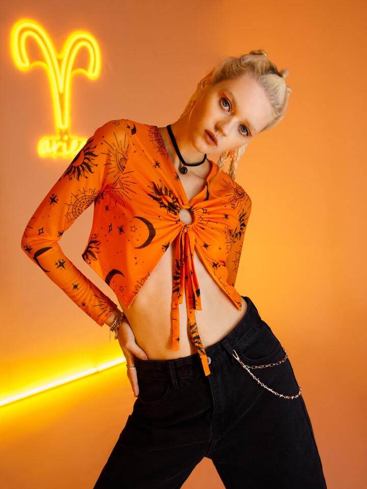 Aries Crop Top mit Sonne & Mond Grafik Ring Dekor