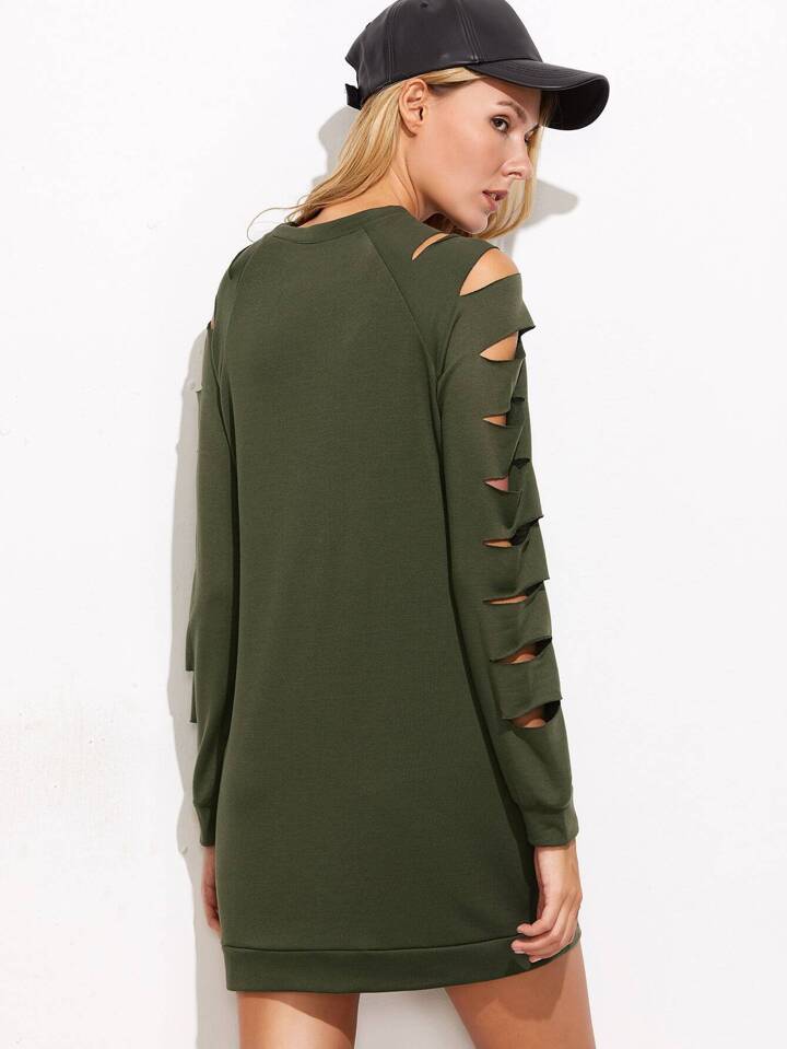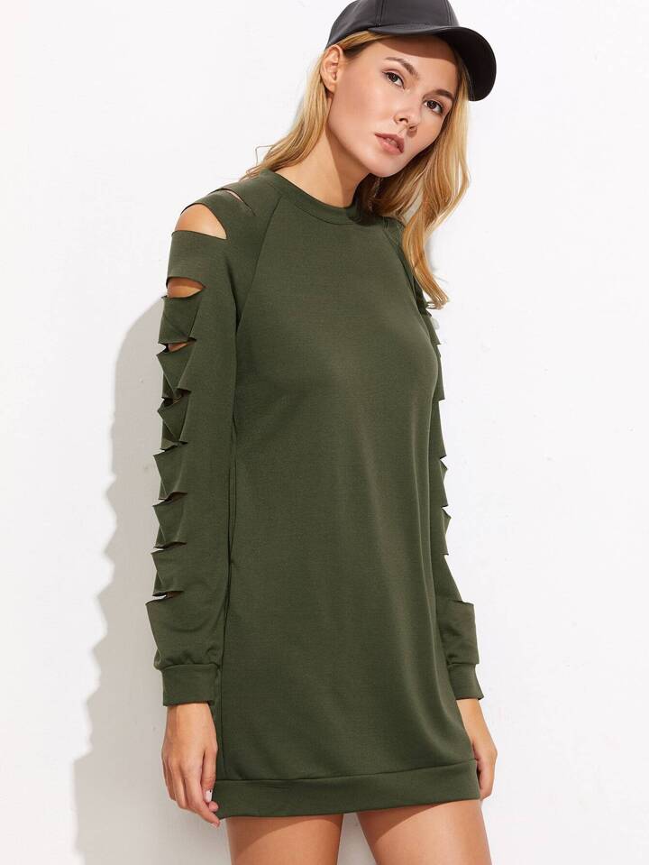 Armee-Grün Ladder Cut Out Sleeve Sweatshirt Kleid