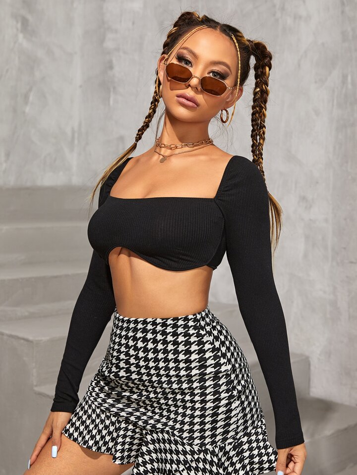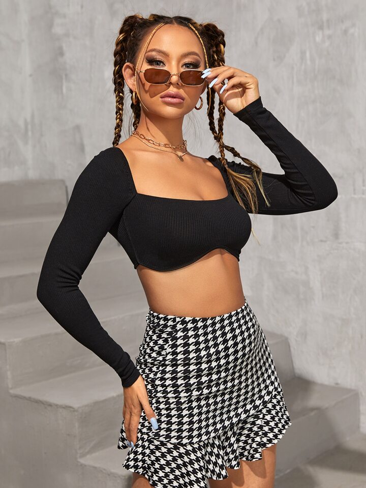 Crop Top mit asymmetrischem Saum, Rippenstrick
