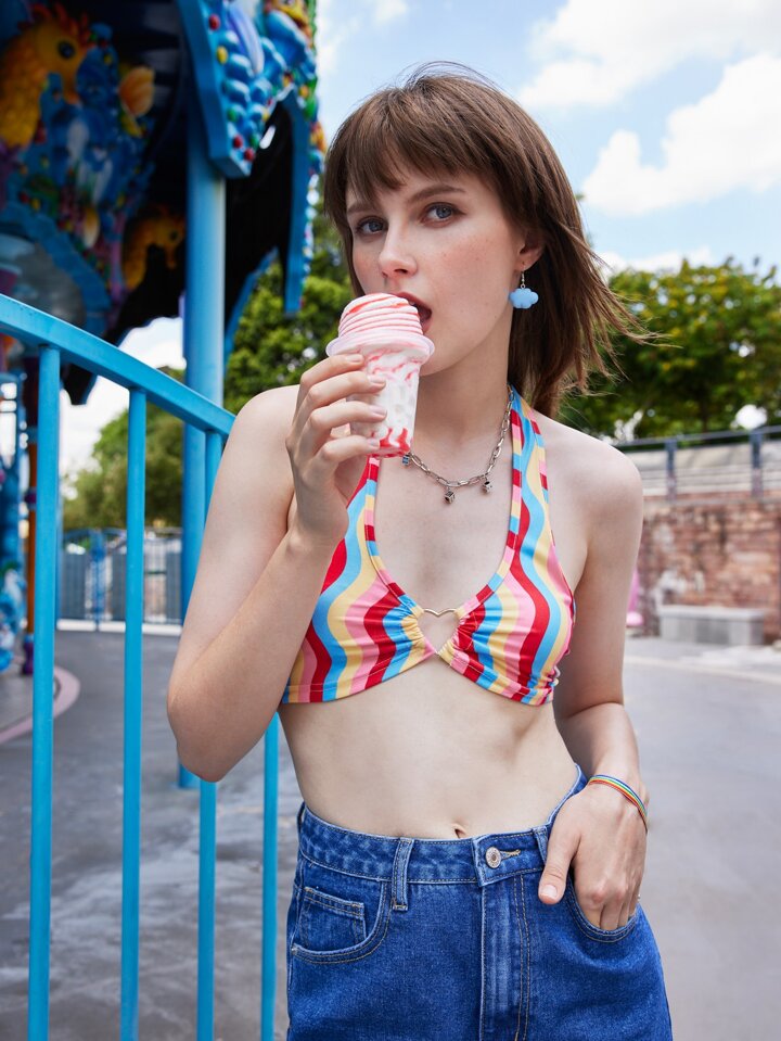 Halter Top mit asymmetrischen Streifen