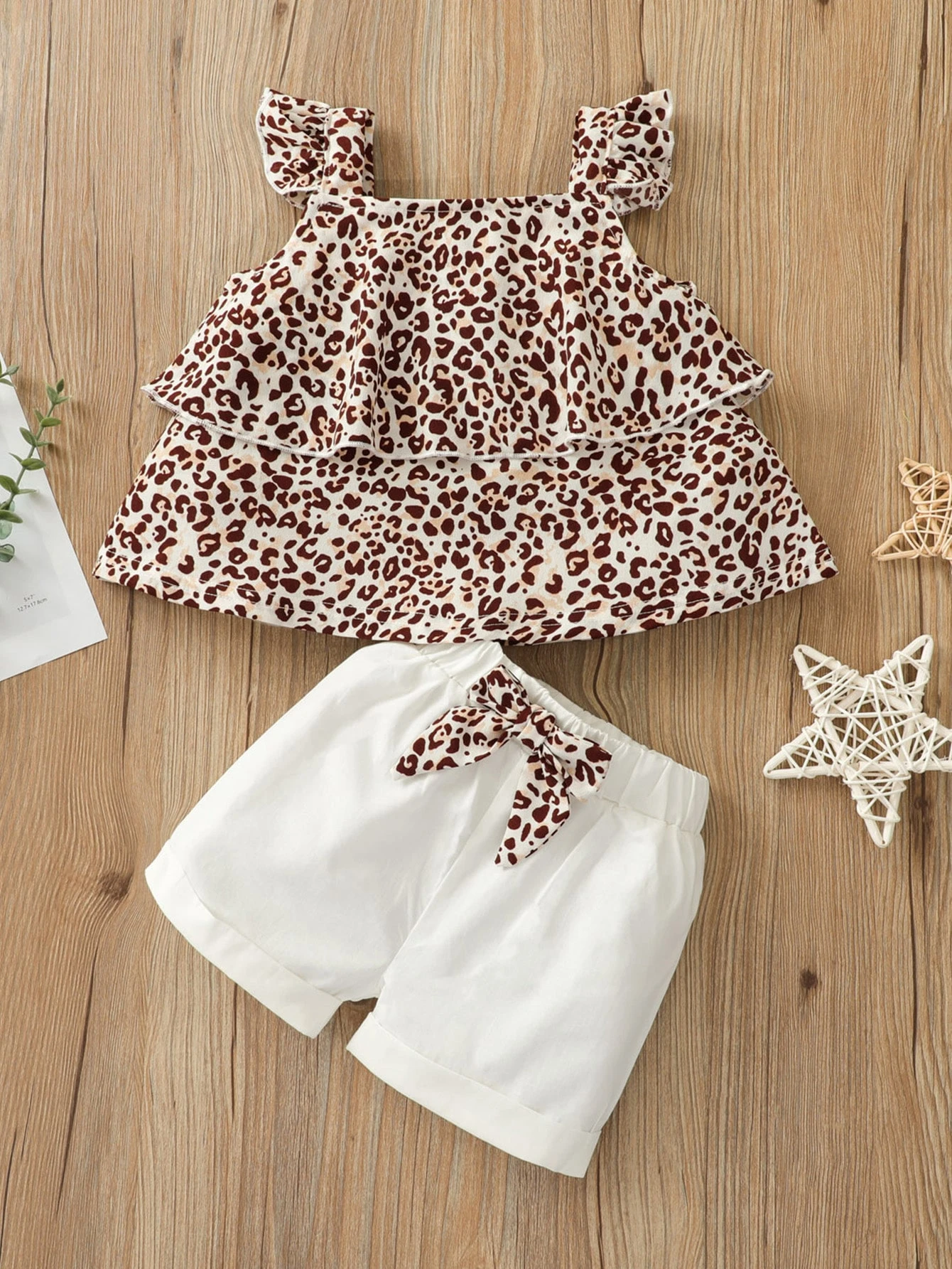 Baby Mädchen Geschichtetes Cami Top mit Leopard Muster & Shorts