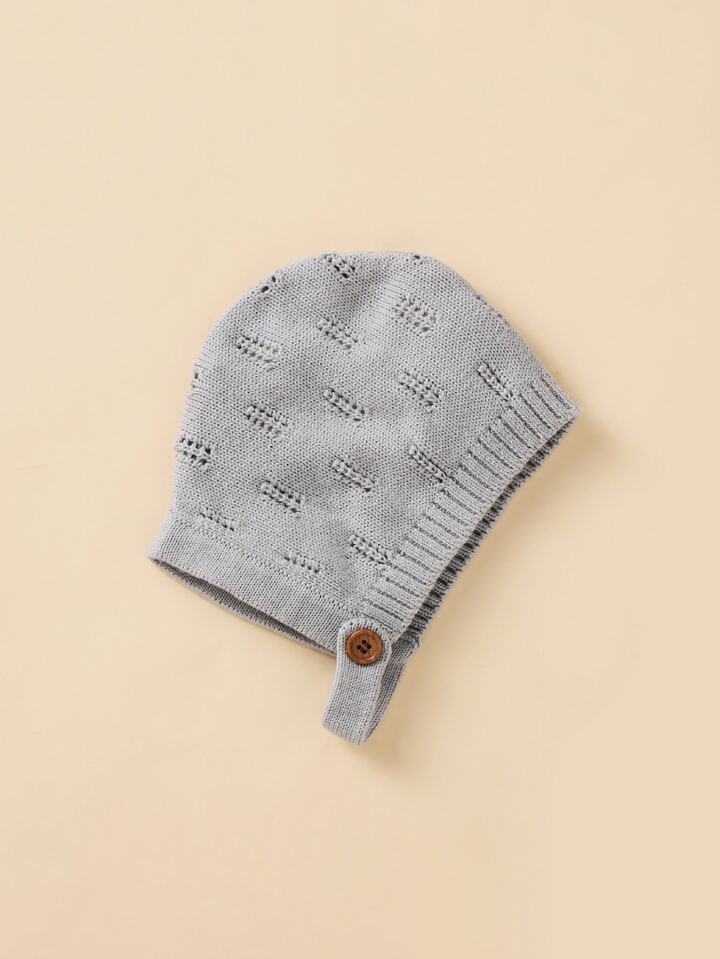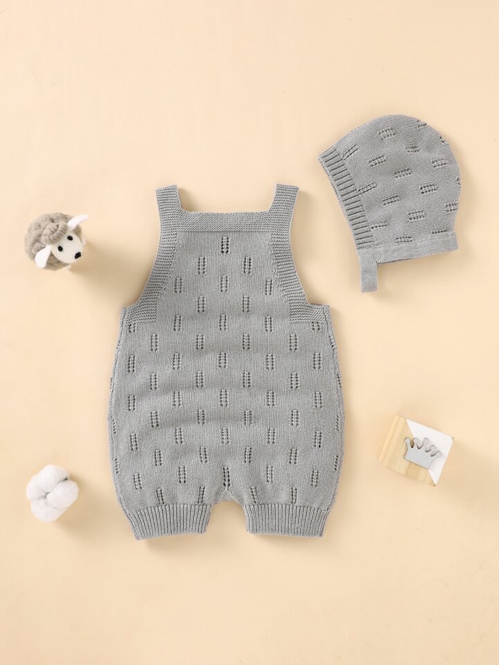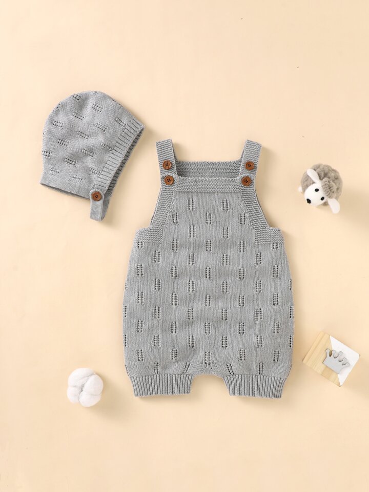 Einfarbiger Strick Jumpsuit mit Knöpfen Detail & Hut