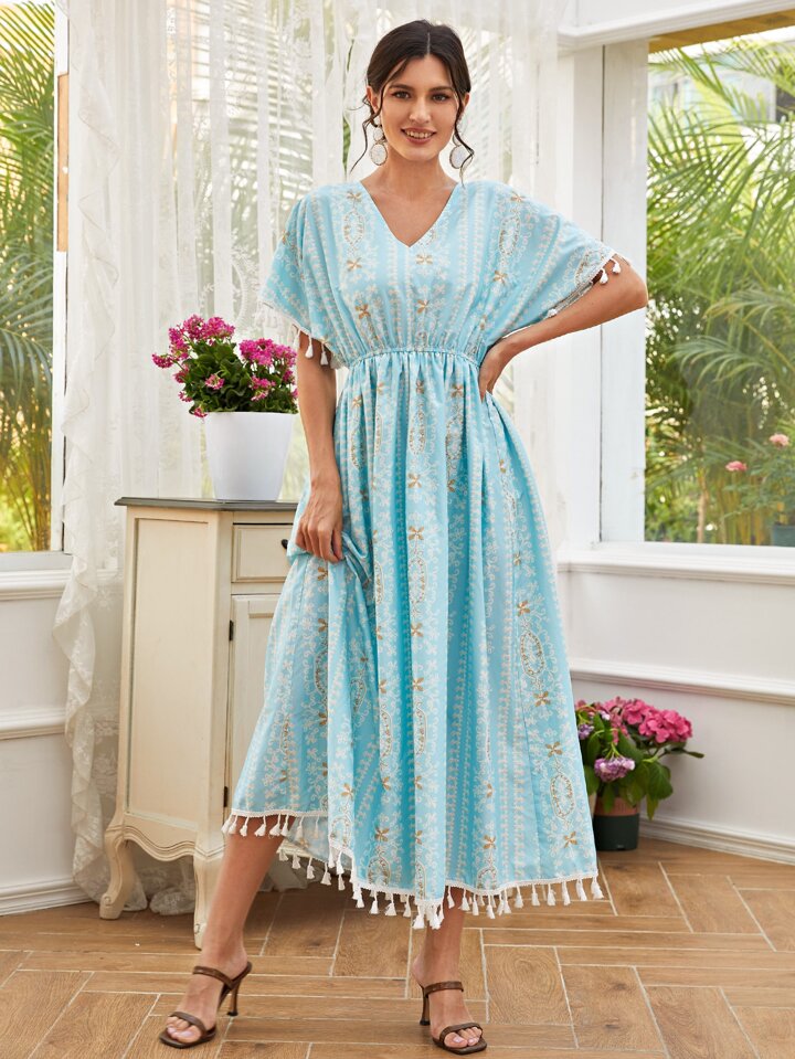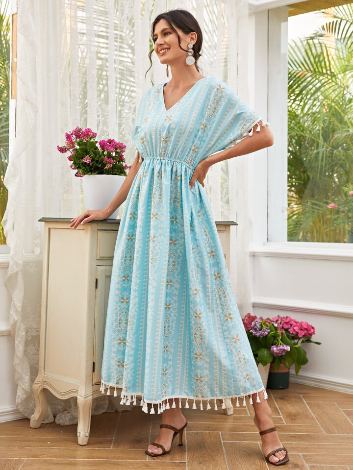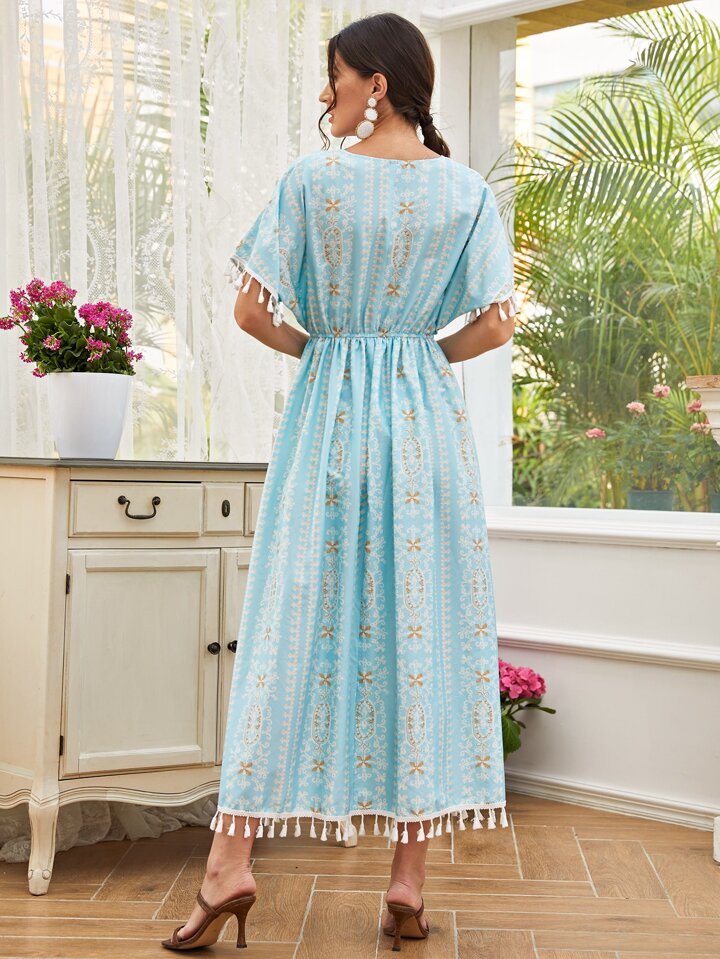 A-Linie Kleid mit Barock Muster und Fransenbesatz