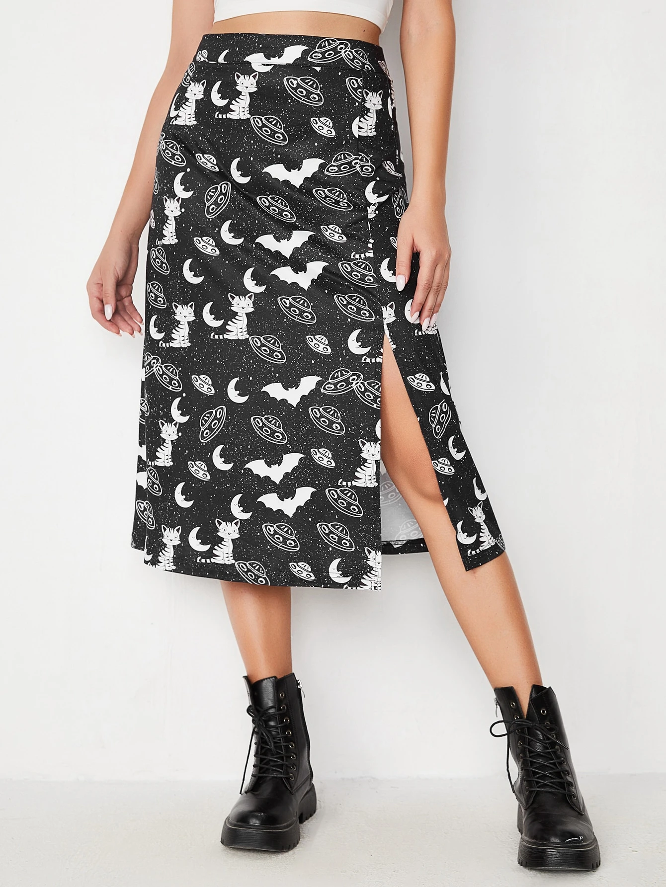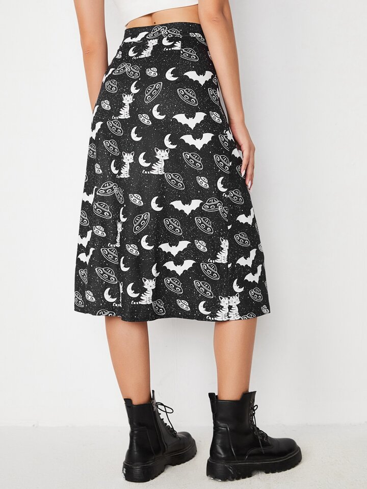 Rock mit Fledermaus & Raumschiff Grafik, Schlitz