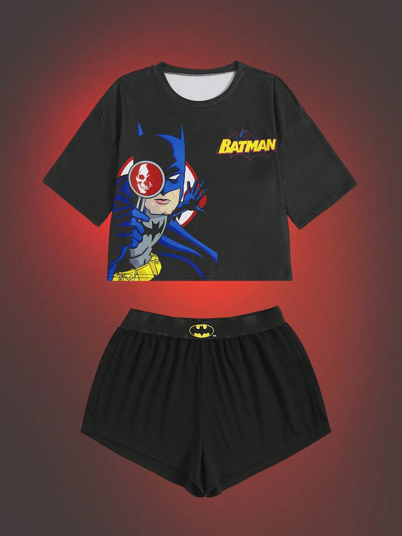 Batman X ROMWE Cartoon Grafik PJ Set mit Buchstaben und Figuren