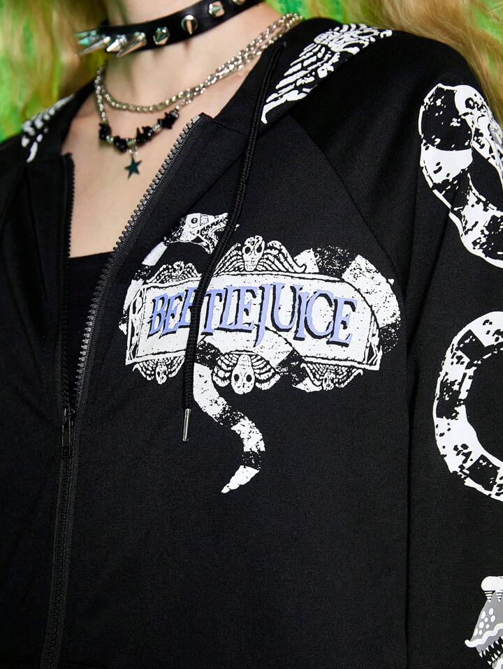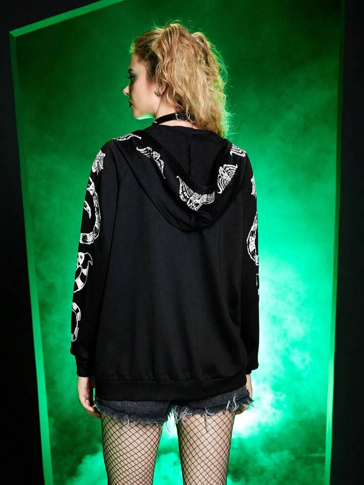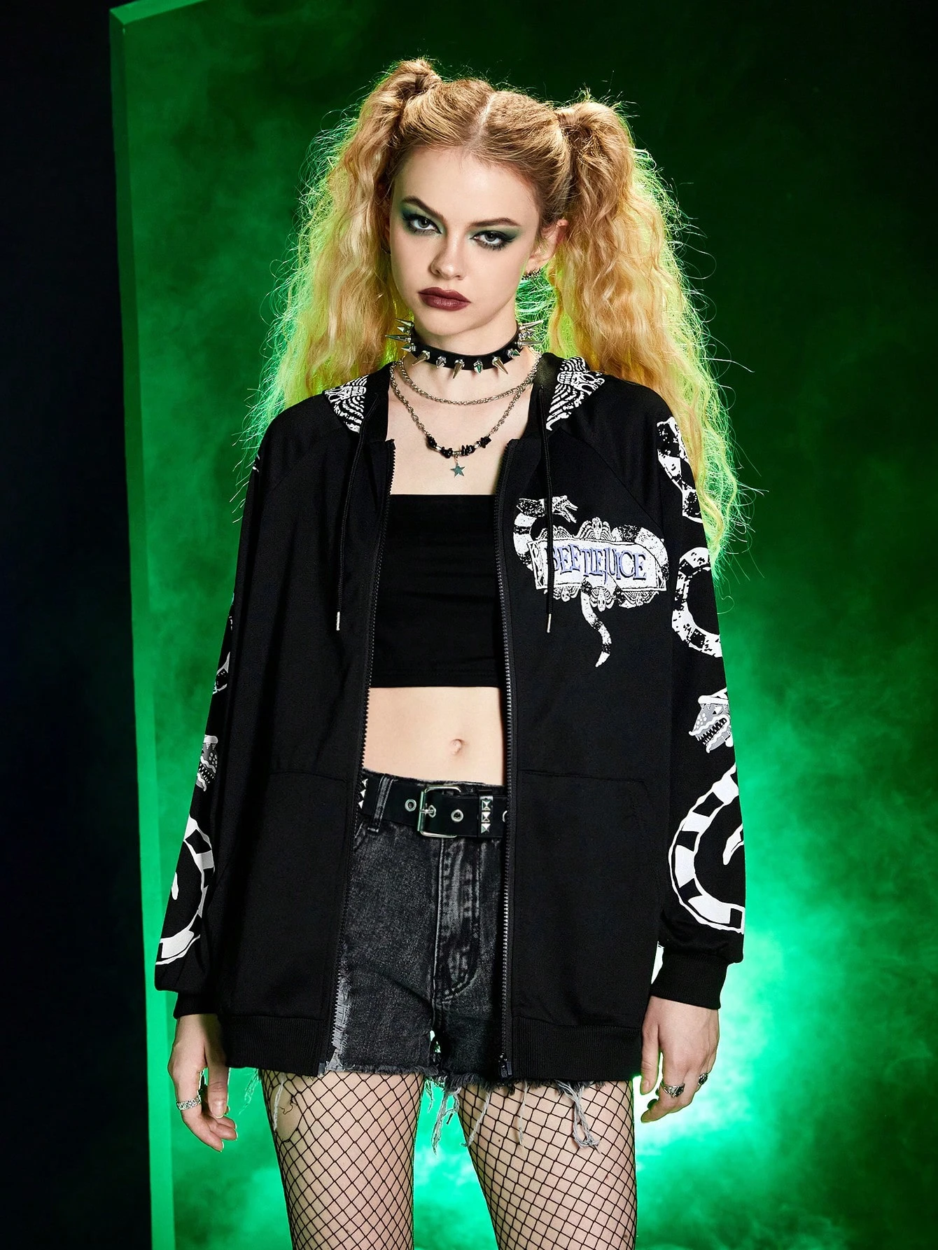 Beetlejuice | ROMWE Hoodie mit Buchstaben Grafik, Reißverschluss, Tunnelzug,