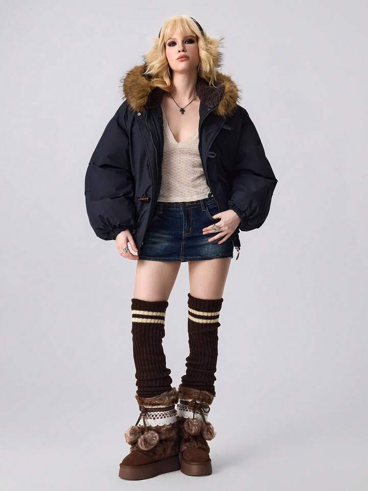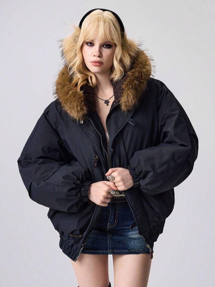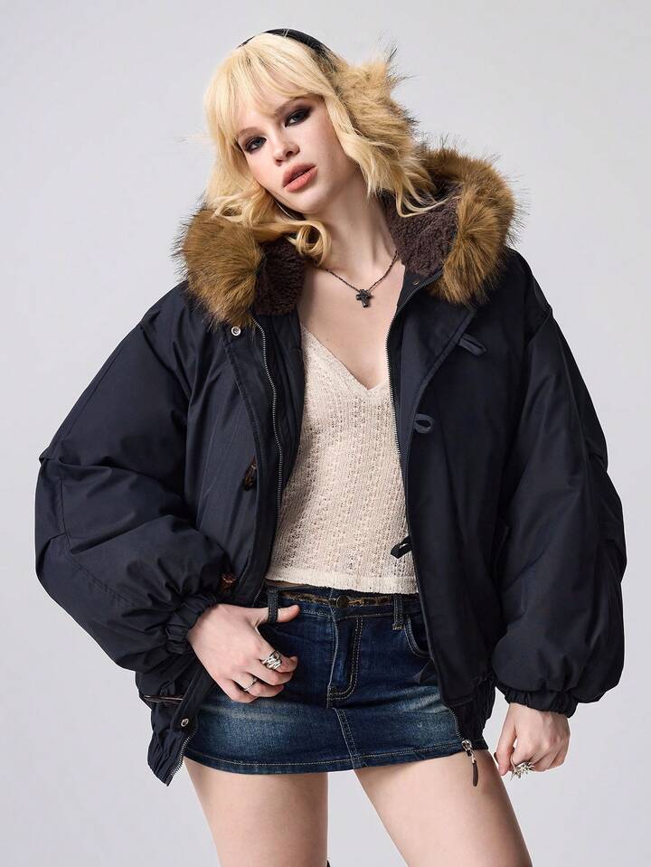 Bestseller Damen Daunenjacke mit Kapuze und Fellkragen, Neue gepolsterte Jacke für Winter 2025