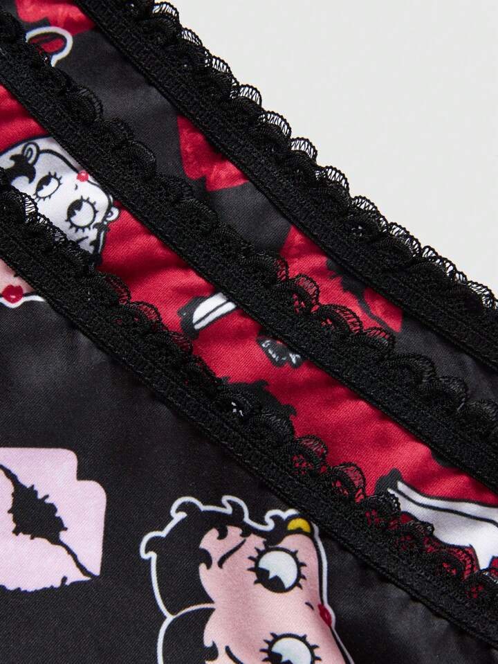 Betty Boop | ROMWE Set aus Dreieck-Höschen mit Cartoon- und Lippen-Muster und Spitzenbesatz