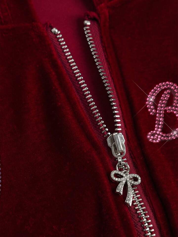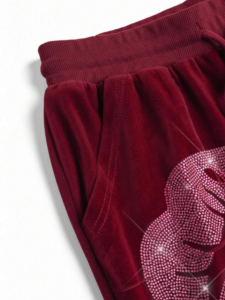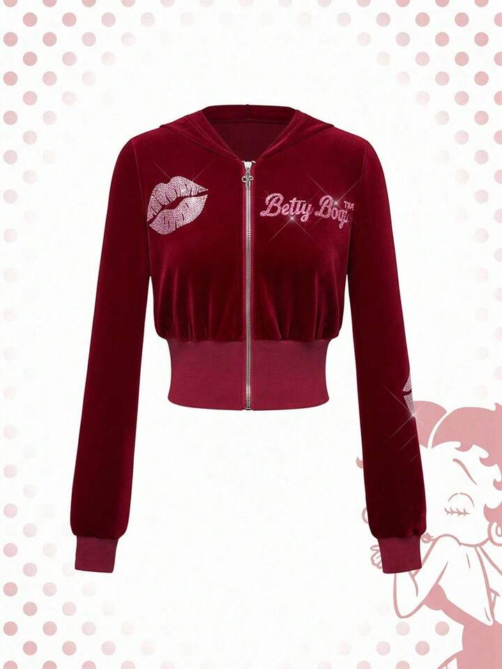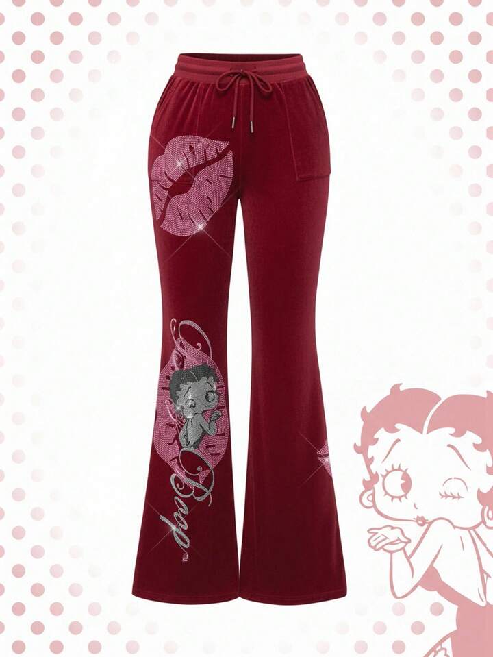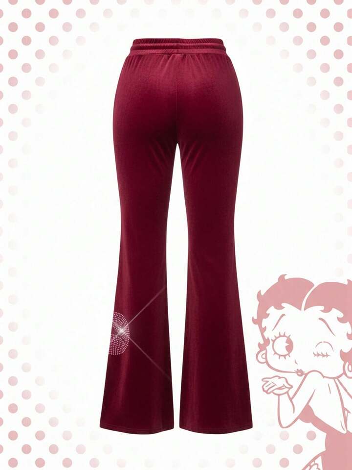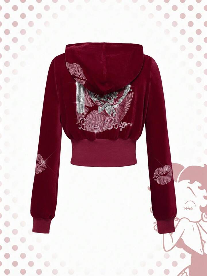 Betty Boop | ROMWE Y2K Samt Sweatshirt & Hose Set mit Buchstaben Grafik und Strass Verzierung, 2 Stücke für Damen