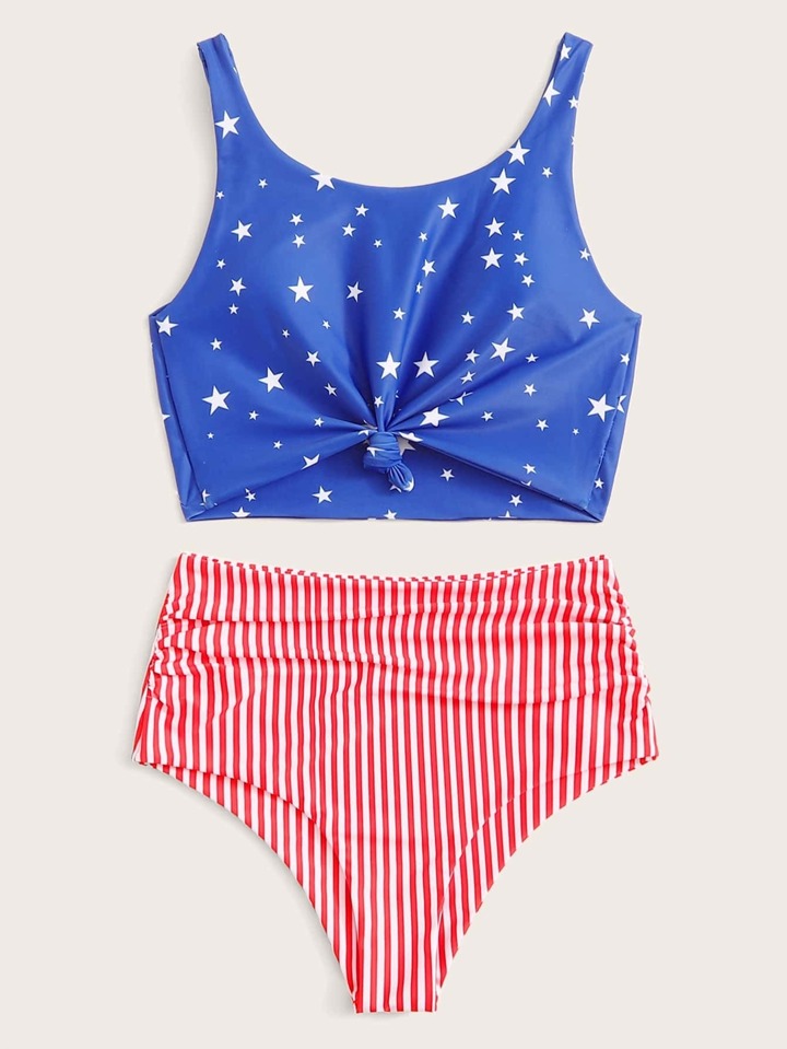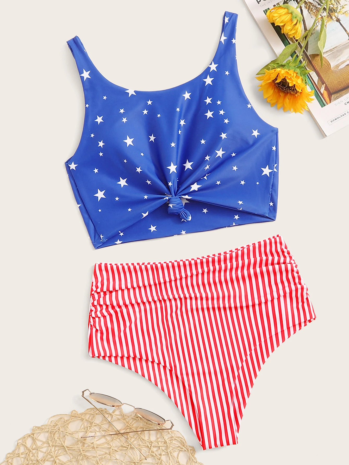 Bikini Set mit Stern Muster, Knoten und Streifen
