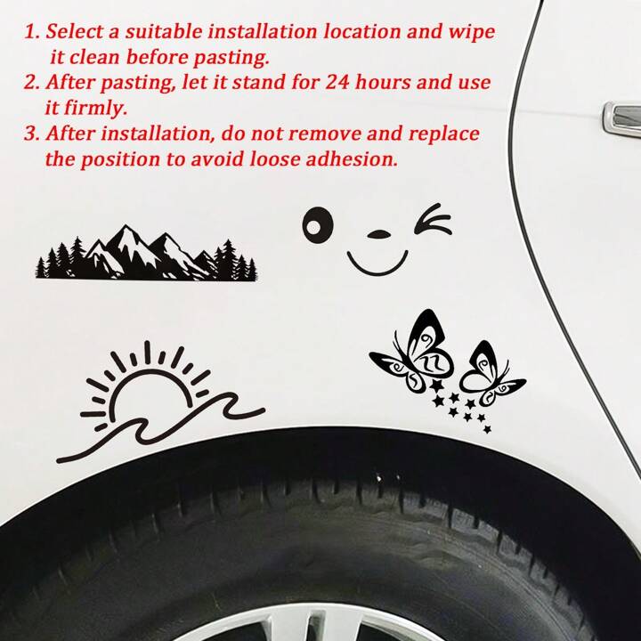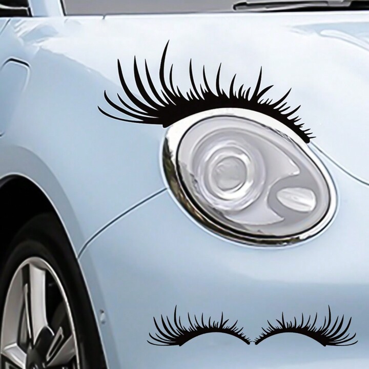 Schwarze Auto-Persönlichkeitsaufkleber, Windschutzscheiben-Persönlichkeitsaufkleber für kratzfeste Scheinwerferbrauen, Auto-Dekorationsaufkleber, optional: Sonnenwelle 1 Stück, Schmetterling Stern 1 Stück, Wimpern 1 Paar, Zwinkern Lächeln 1 Paar, Einheitsgröße