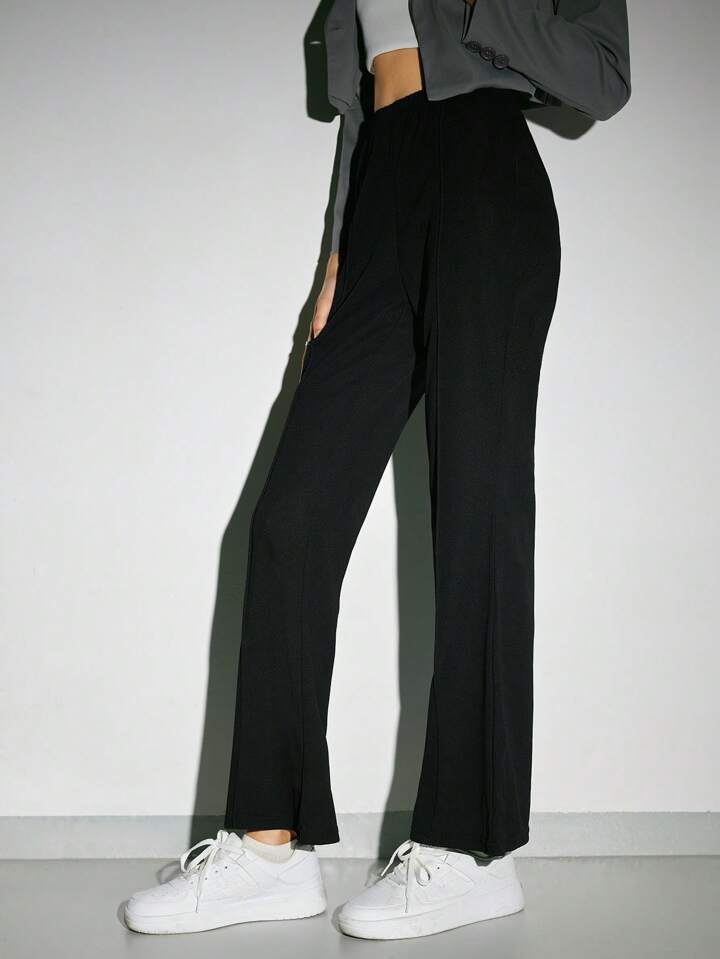 Schwarze Hosen mit hoher Taille und weitem Beinschnitt