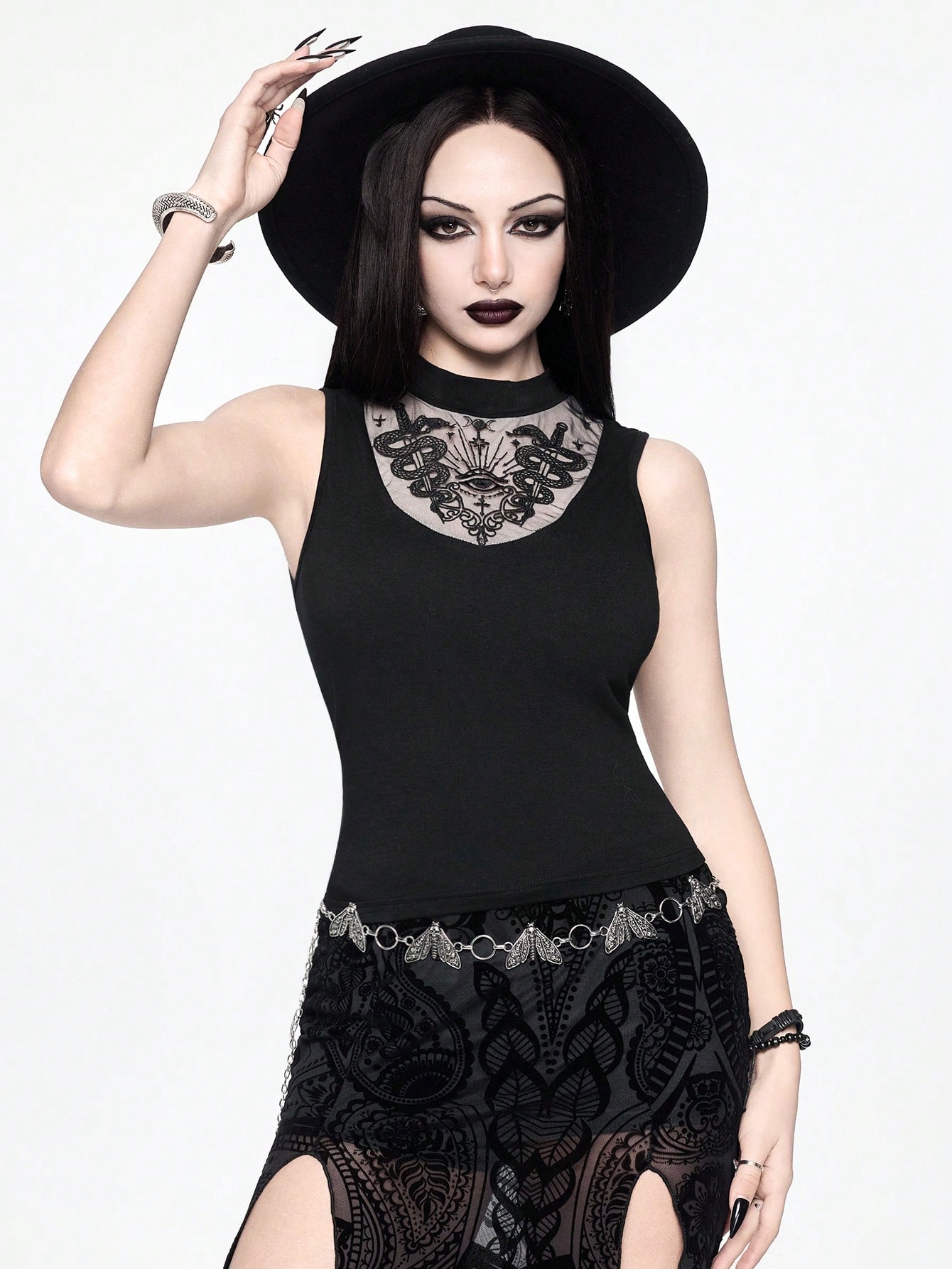 Boho Goth Schlangenauge Hohldesign eng anliegendes Stehkragen Camisole
