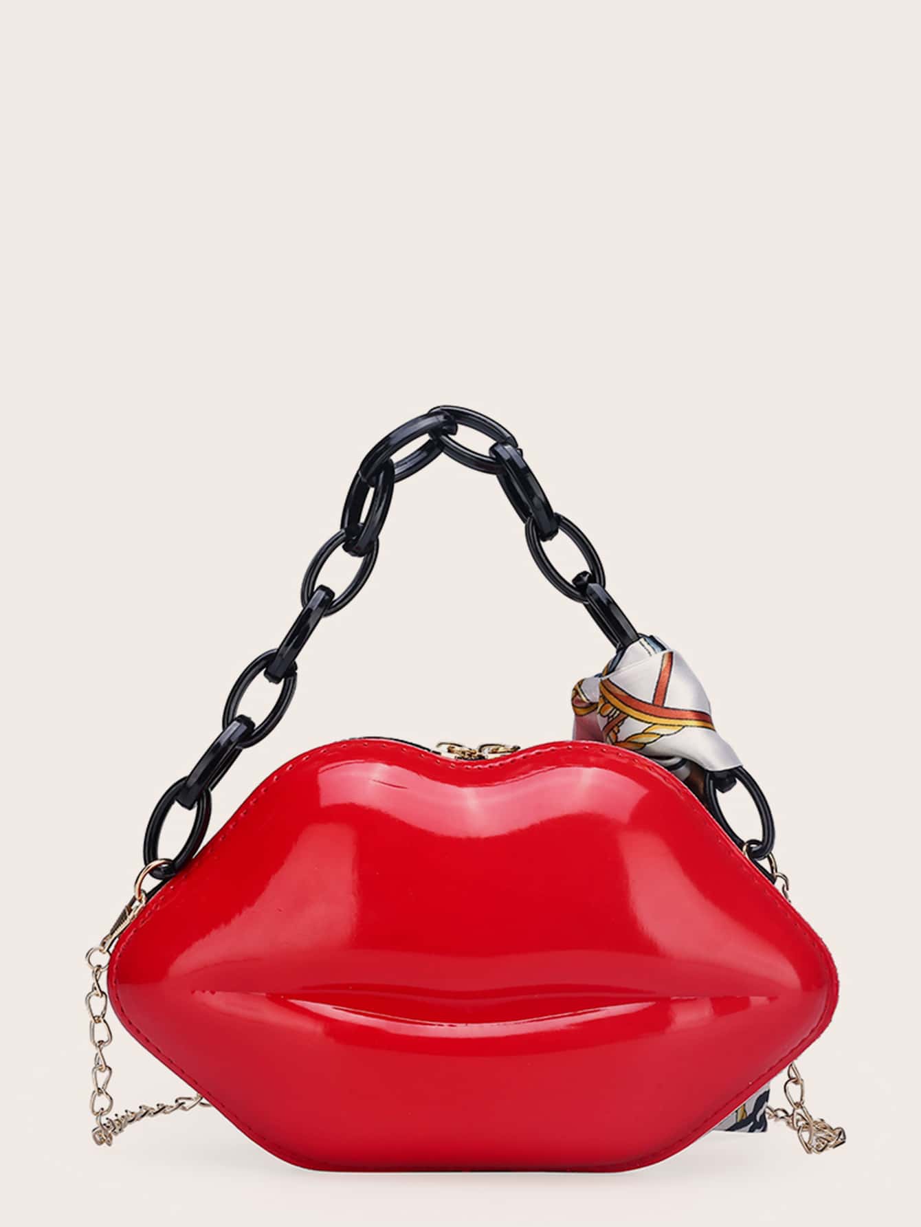 Schlanke Bow Decor Schaldekoration, Lippenförmige Handtasche, wasserdichte, sanddichte und durchsichtige Tasche, Strand-Sport-Picknick-Snacks Klare Handtasche für Frauen