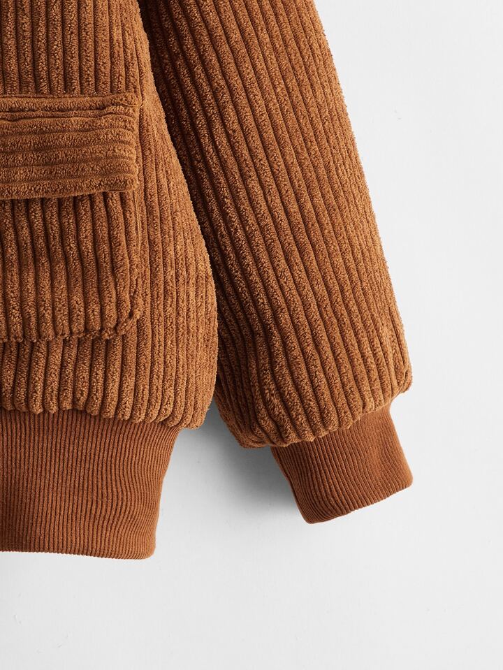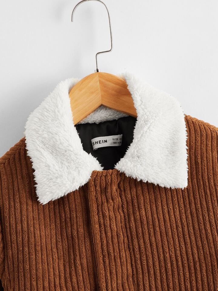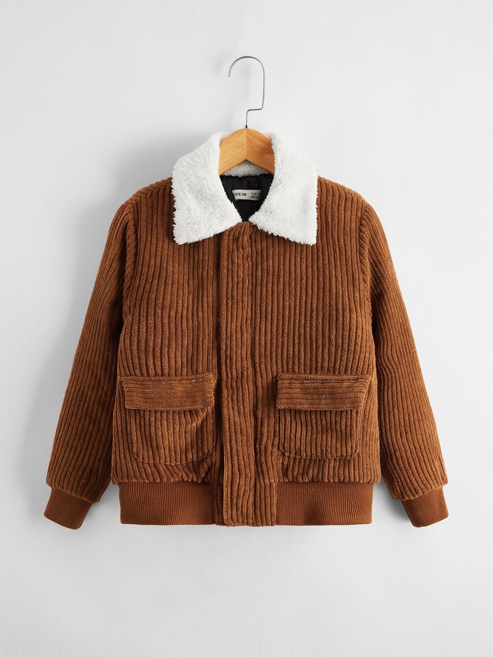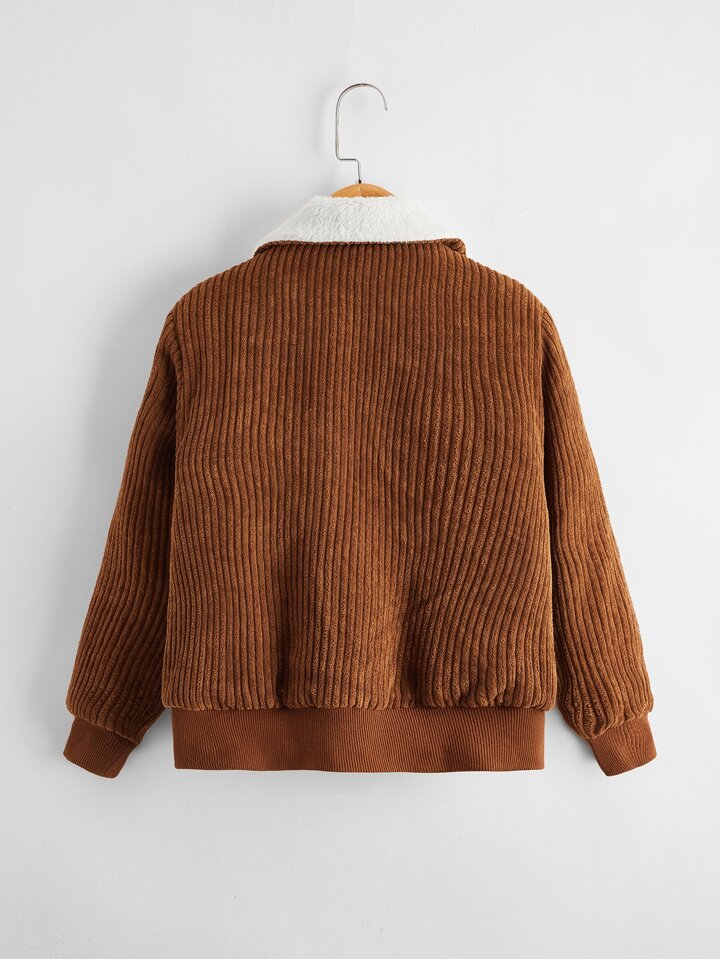 Kord Jacke mit Kontrast, Teddy Kragen und Taschen Klappe