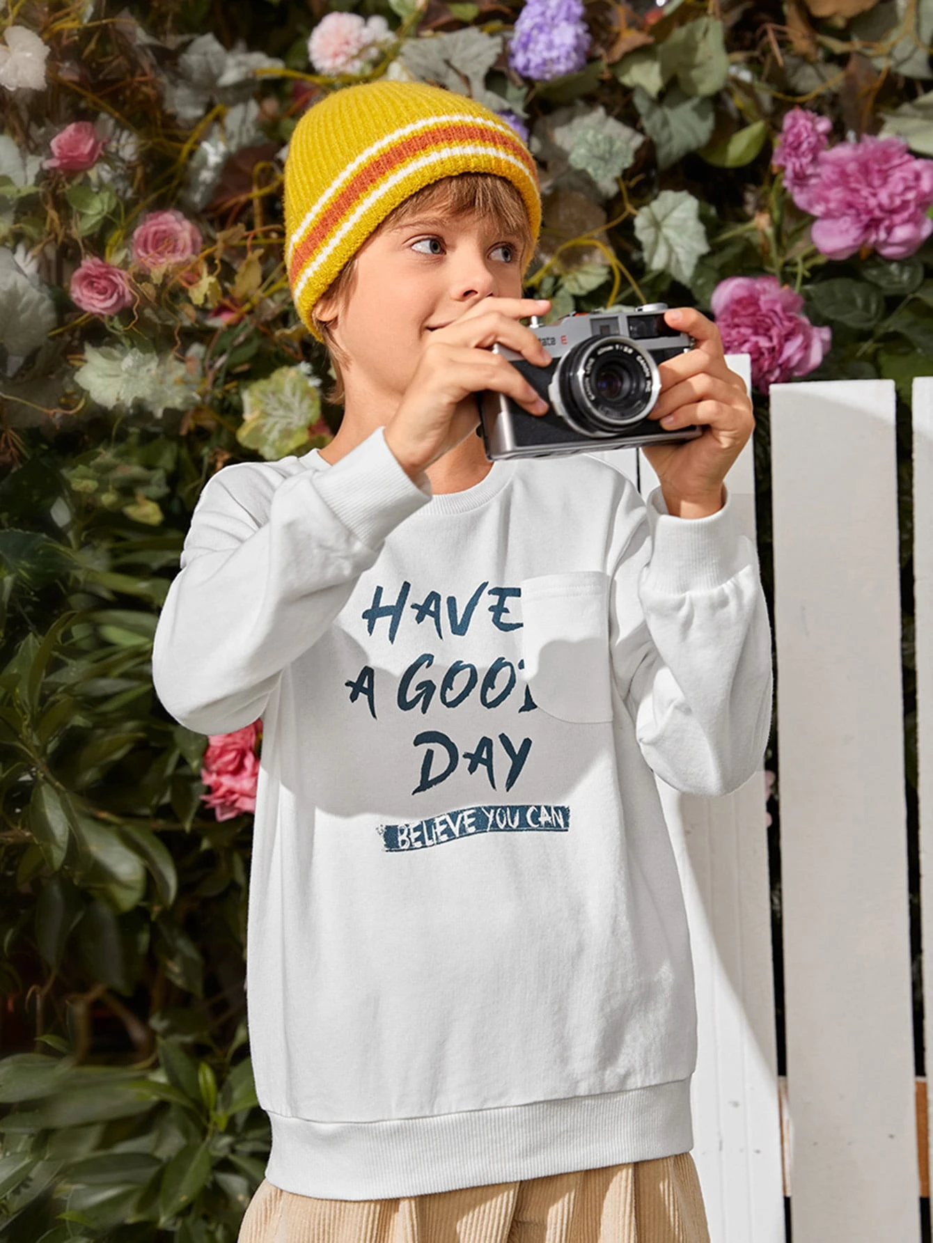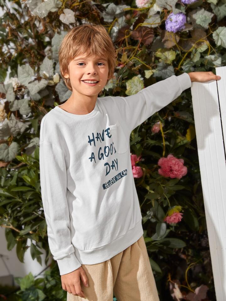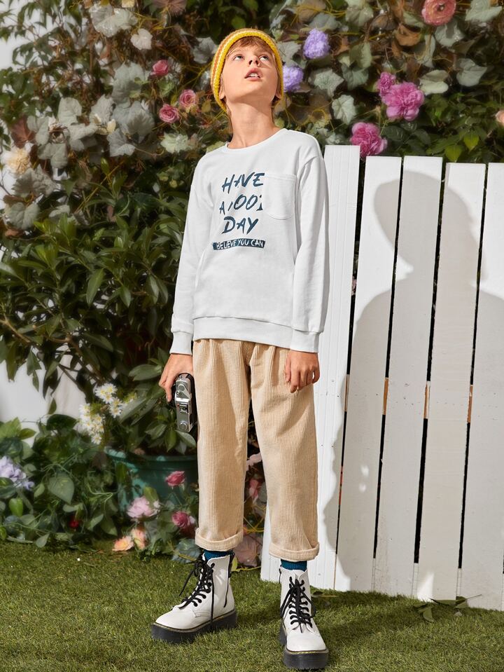 Pullover mit Taschen vorne und Buchstaben Grafik