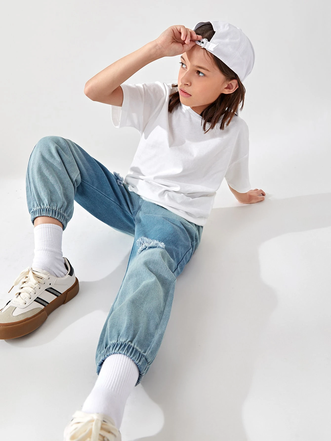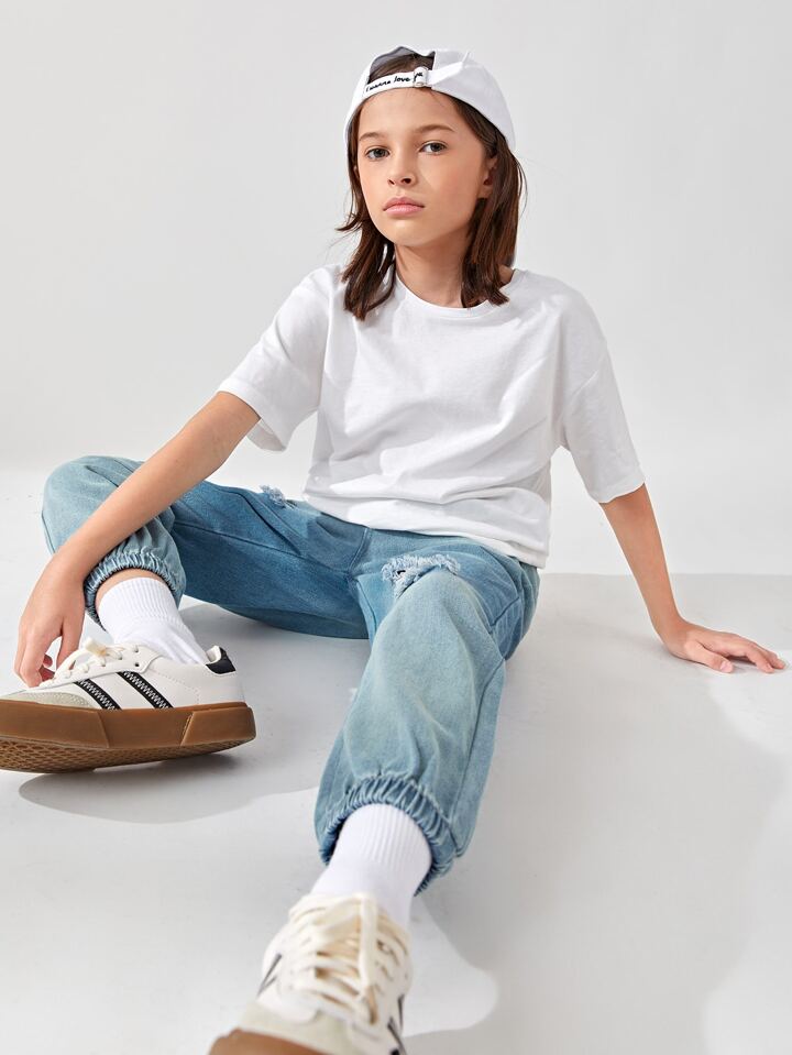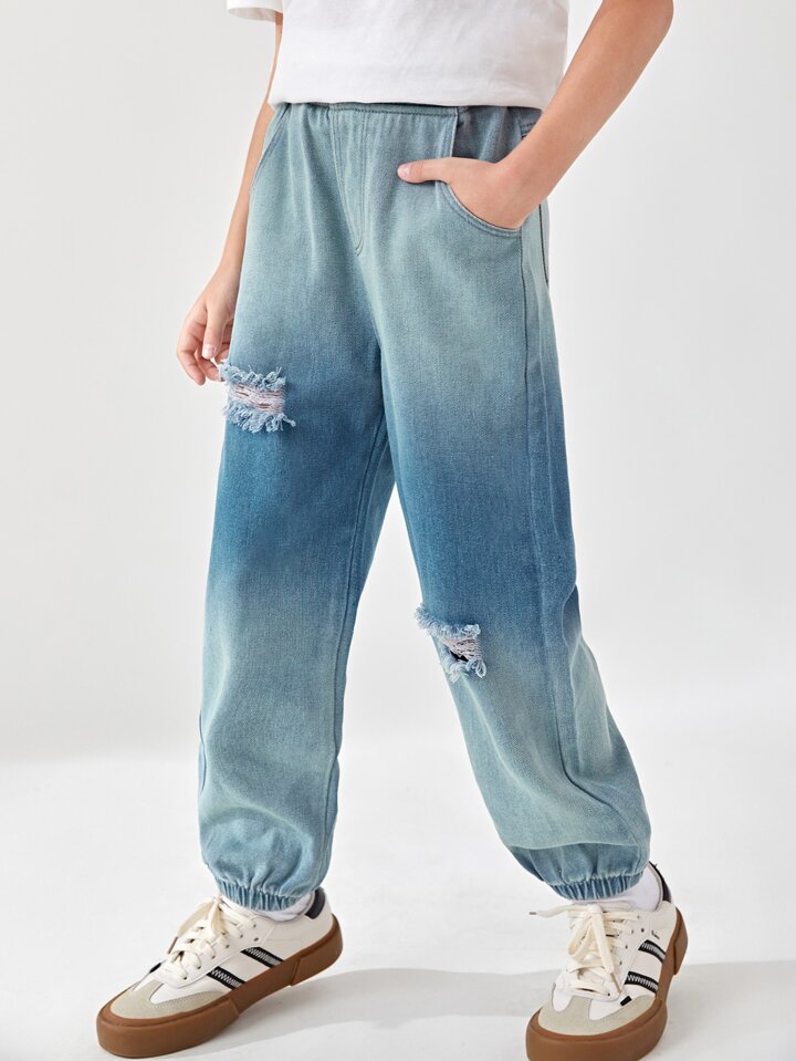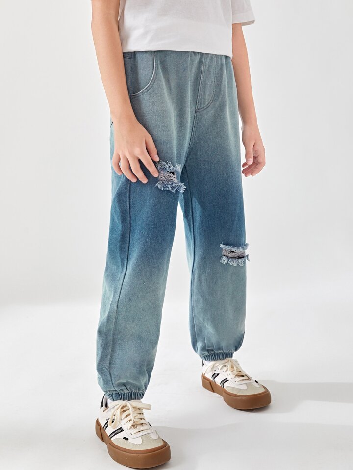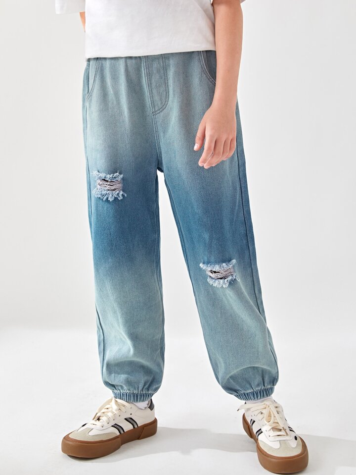 Jungen Karotten Jeans mit Riss und Wäsche