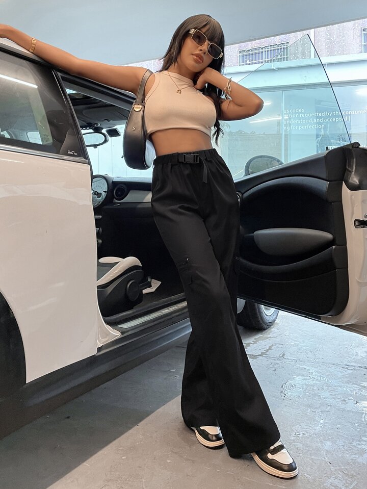 Cargo Hose mit Schnalle, Taille, Pattentasche