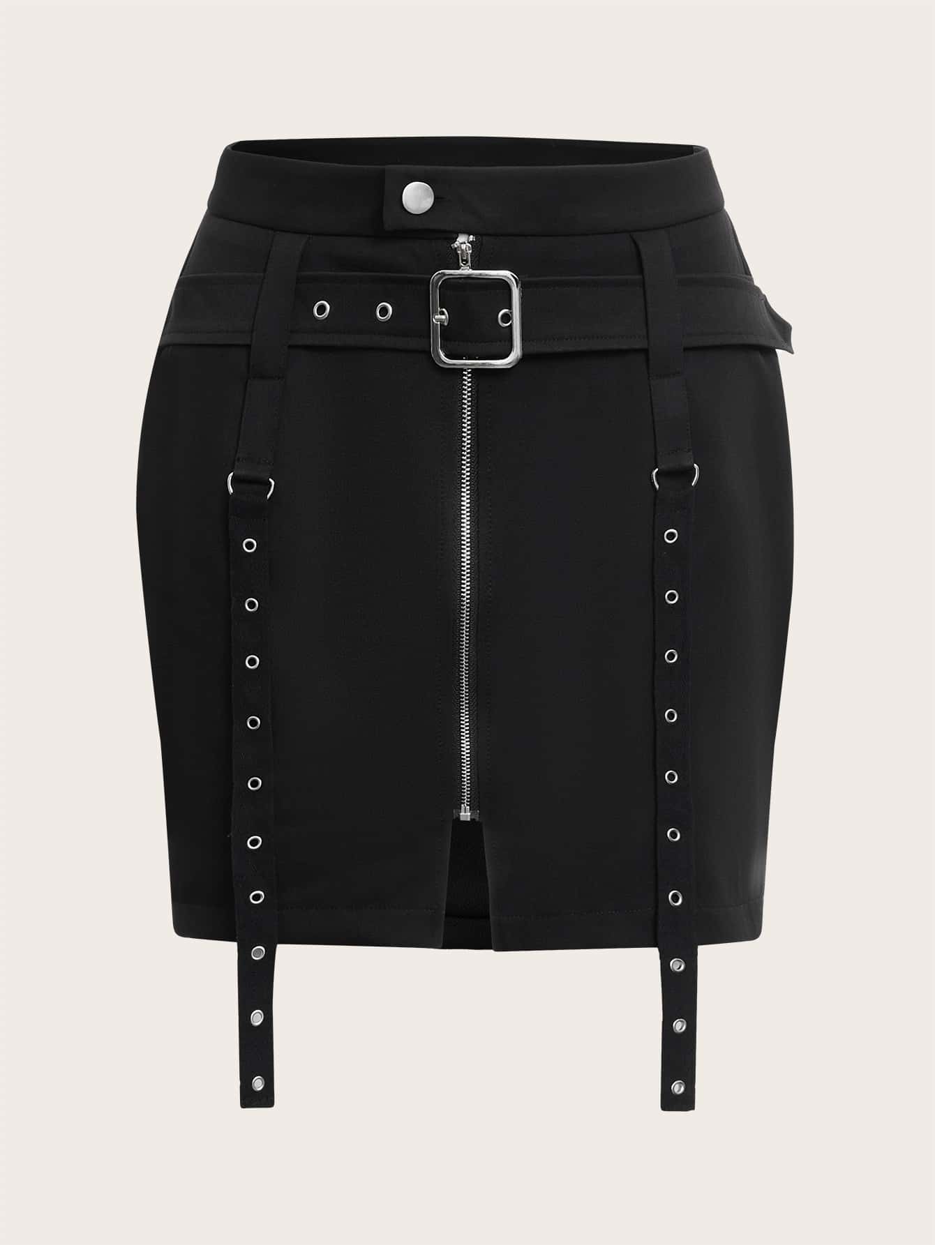 Rock mit Schnalle, Tülle Öse, Reißverschluss