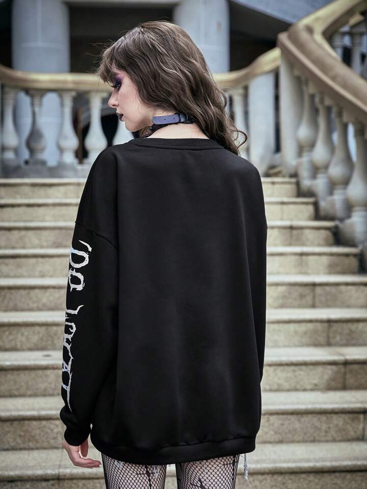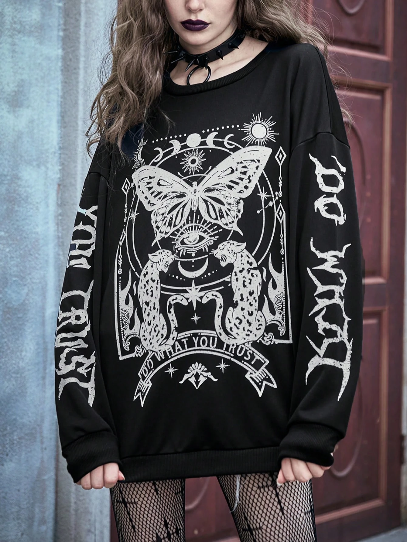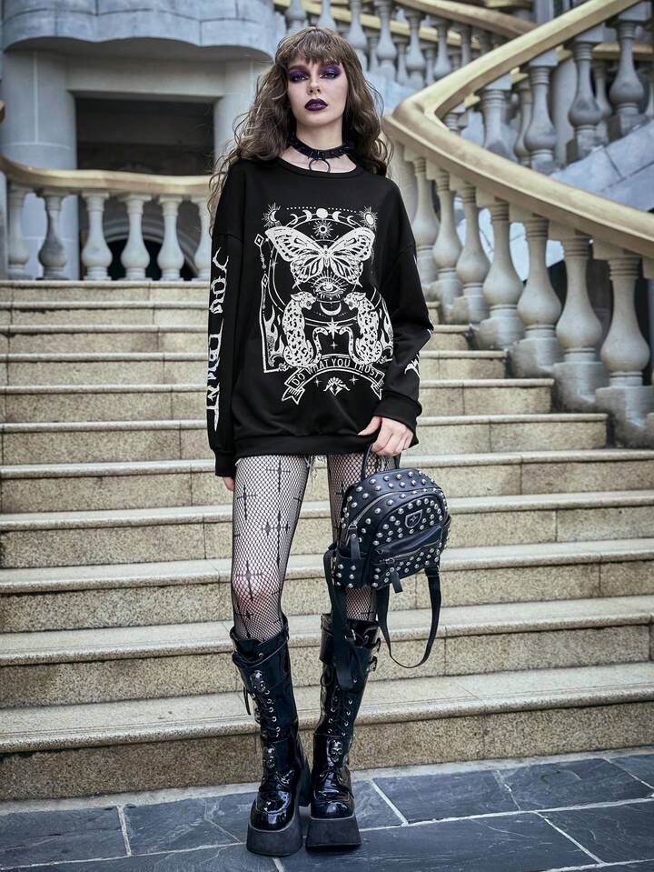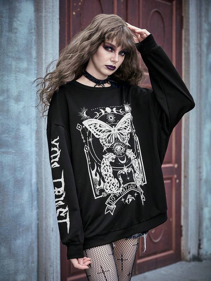 Sweatshirt mit Schmetterling & Auge Muster, Drop Shoulder