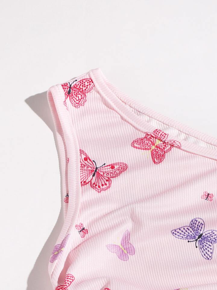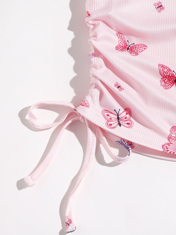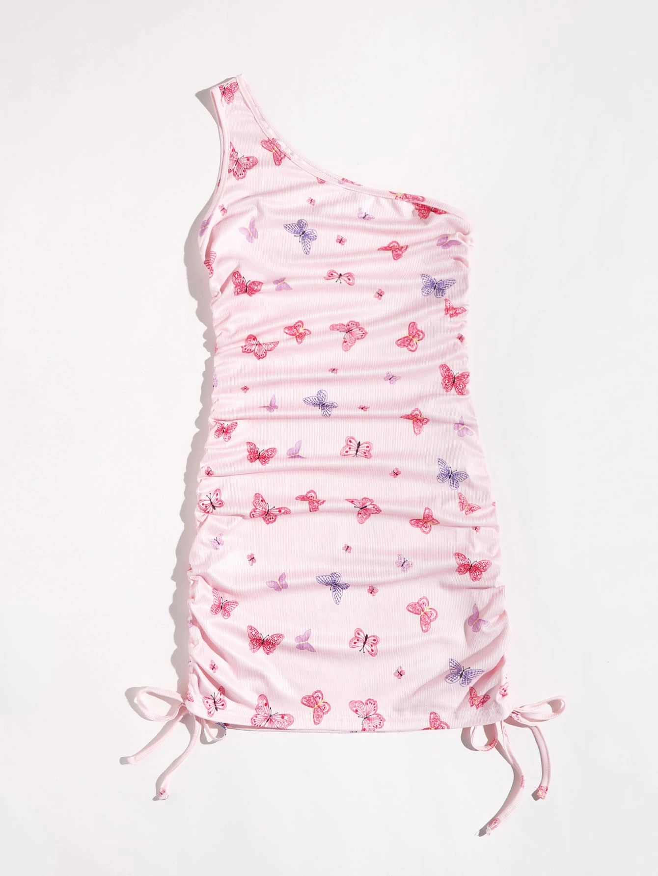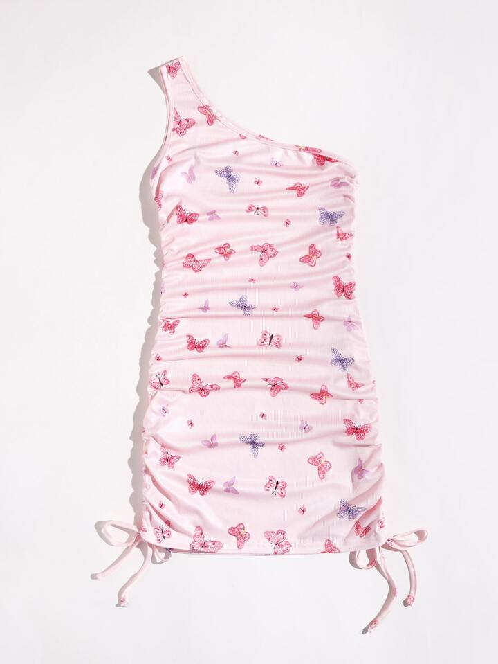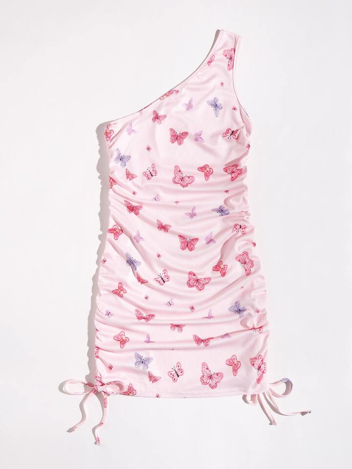 Kleid mit Schmetterling Grafik, einer Schulter und Kordelzug