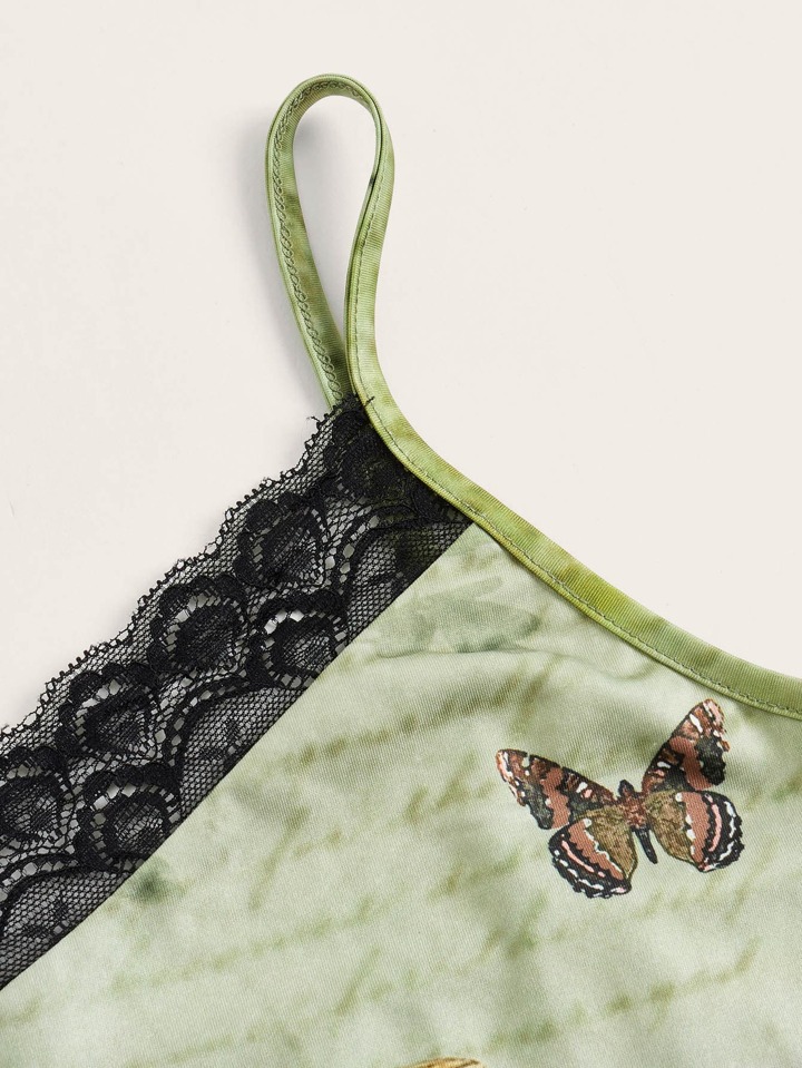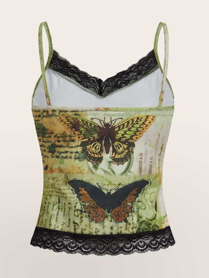 Cami Top mit Schmetterling Muster, Kontrast Spitzen