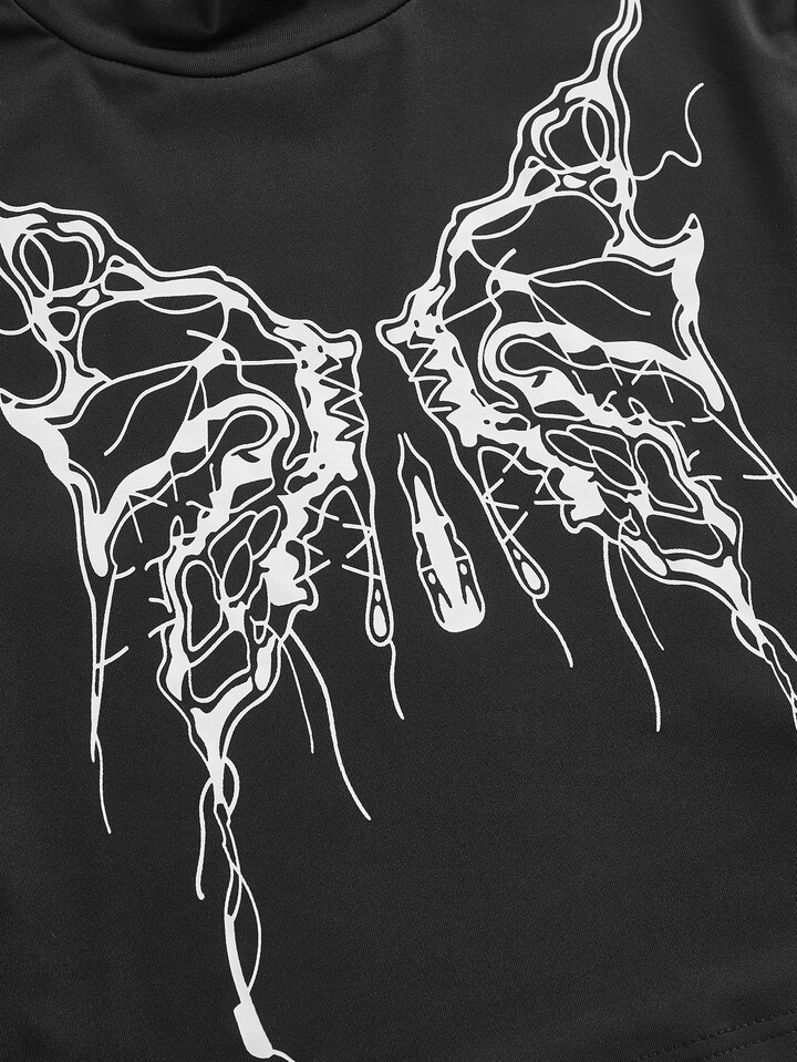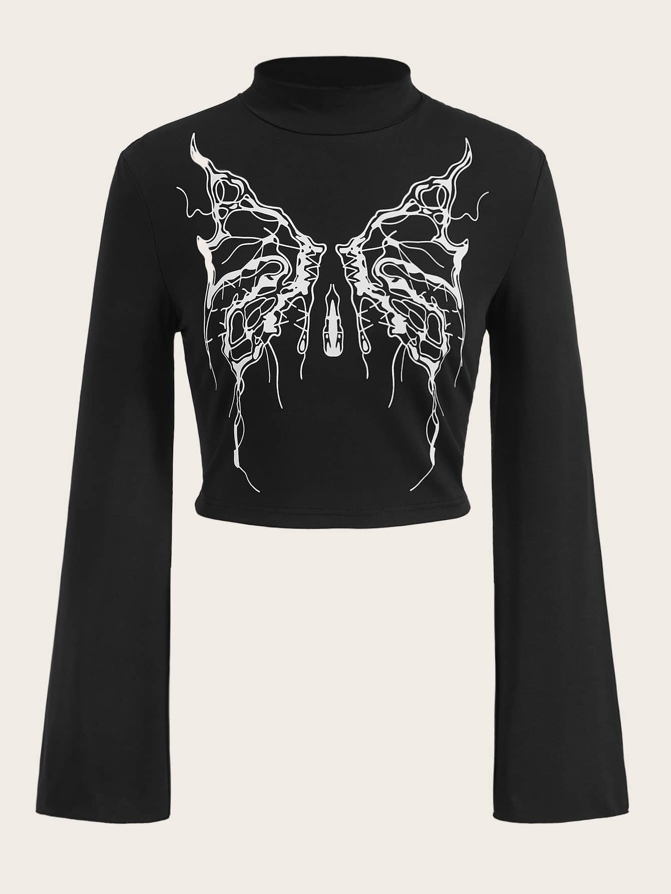 T-Shirt mit Schmetterling Muster, Stehkragen